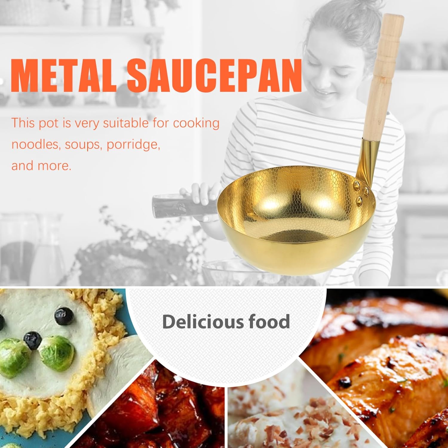Package List 1 x small pot Characteristics -Nonstick bottom: this small pot has hammered texture, prevents food from sticking, easy cleaning saucepans. -Enhanced durability: made with thickened stainless steel for performance in daily use milk pan. -Versatile cooking tool: perfect for boiling noodles, simmering soups, and making porridge easily Kitchen Cookware. -Color:Golden sauce pan -Compact size: this small cooking pot is very portable, suitable for small kitchens and easily storage small milk pan. -Material:Stainless steel small saucepans -Size:30.00X20.00X20.00cm/11.79X7.86X7.86in stainless steel pots -Stylish appearance of this small cooking pot can add a touch of elegance to your kitchen cookware milk cookware.Goods Informationstainless steel pots With its compact size, this cooking pot is ideal for small families or individuals.small milk pan Whether you're cooking or travel, this pot is a versatile and practical choice.milk cookware It is compact and lightweight, making it convenient to carry and store.milk pan for stove The thickened design durability and longevity, while the gold exterior adds a touch of sophistication to your kitchen