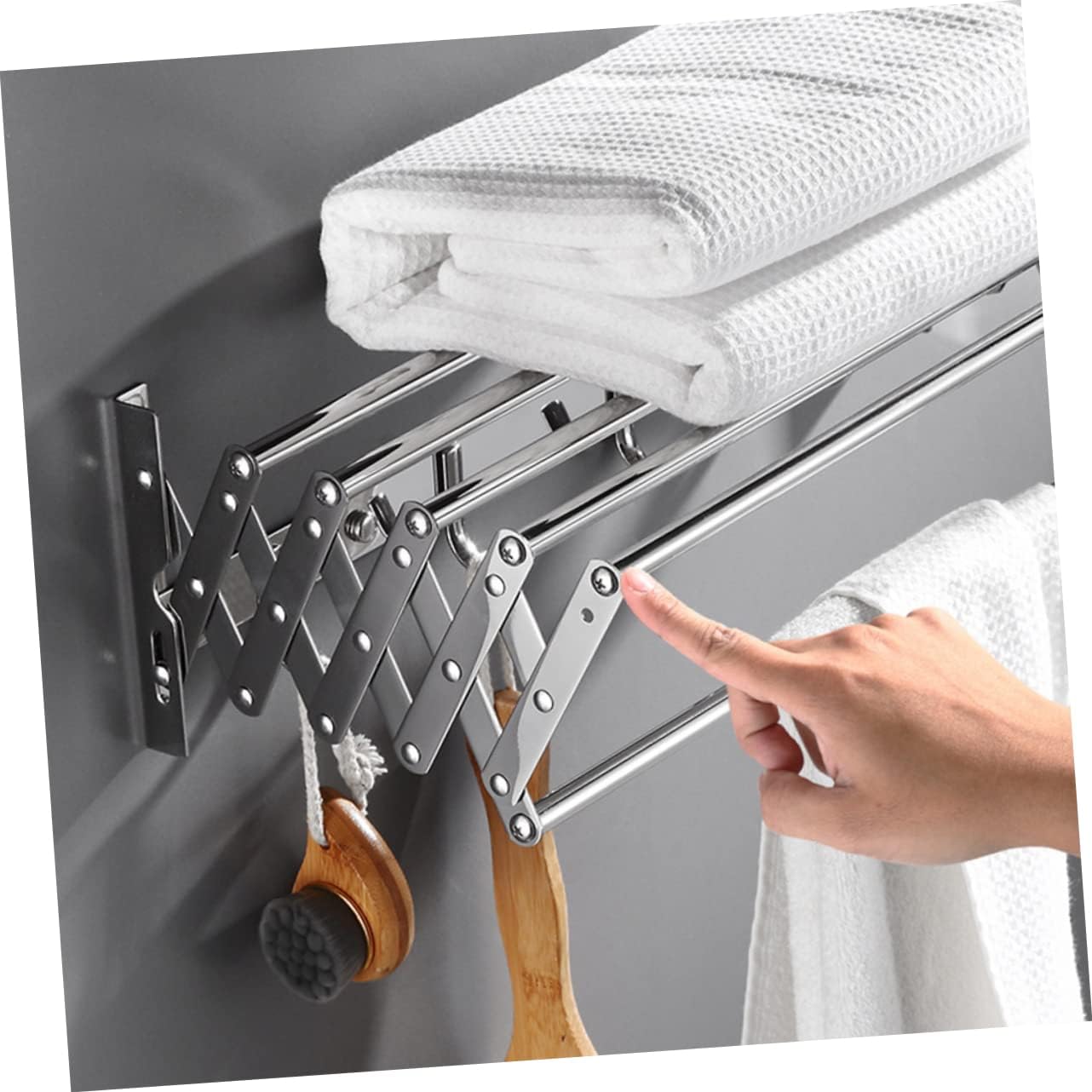 Package Include 1 Hanger Characteristics - Size: 48.50X14.50X10.50cm/19.06X5.70X4.13in bathroom towel rack - Material: stainless steel bathroom towel storage rack - Made of material for lasting use bathroom racks. - With towel bar and hooks for flexible laundry organization and closet storage system bathroom towel holders. - ColorSilver bathroom towel holder - Suitable for bathroom, kitchen, bedroom, garage, and etc bathroom stainless steel shelf. - Solid base plate, easy to install and not easy to deform towel holders for bathrooms. - Telescopic design to provide more storage space towel stand.Goods Descriptiontowel storage racks for bathroom This item is a wall mount clothes rack hanger, which is made of stainless steel.bathroom towel shelf With telescopic arm, easy to fit for different demands, it is a great clothes rack for laundry organization and closet storage system