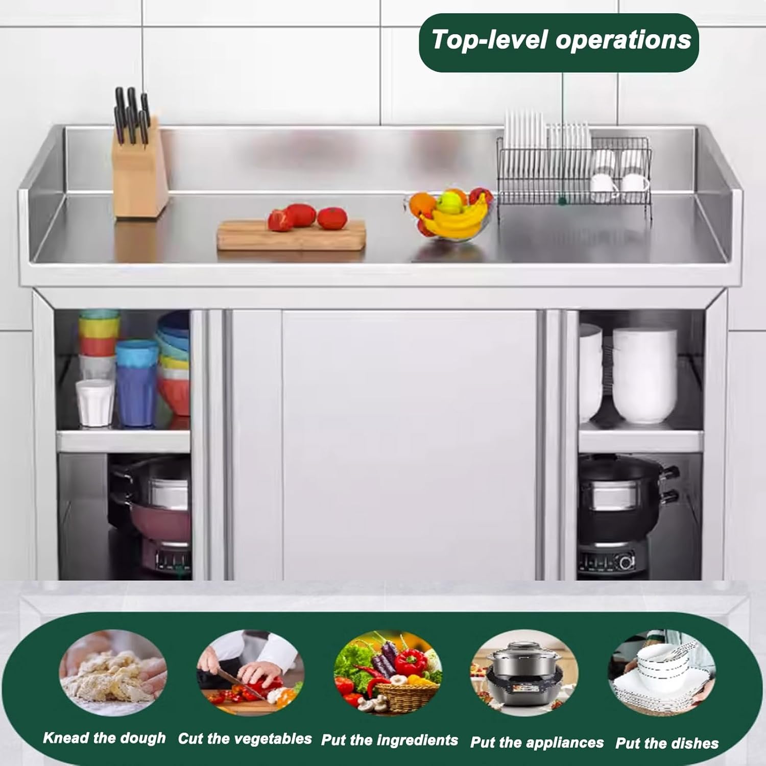 ■Features:The GUAWJRZDP Kitchen Prep Table has two sliding doors which keep items while maximising your organisational skills. Lets you easily access and store your gear or supplies while keeping the environment clean and tidy.The backsplash keeps your valuable equipment and supplies away from slipping off the table. The sturdy construction endows this Commercial Heavy Duty Table with strong bearing capacity. The adjustable foot pads keep it stable and balanced on any floor.■Product parameters:Product name: Stainless Steel Work Table Prep Table Heavy Duty Prep WorktableProduct color: SilverMaterial: stainless steelProduct size: Length: 80/100cm(31.4/39.3in)Width: 50/60cm(19.6/23.6in)Height: 80cm/31.4inVersatile for various settings: Hotel/kitchen/restaurant/workshopIs assembly required: NO♥Note:1.Due to manual measurement, there may be an error of 1-3cm, please understand.2. Due to factors such as shooting light and different display screens, there may be a certain color difference, please refer to the actual object.