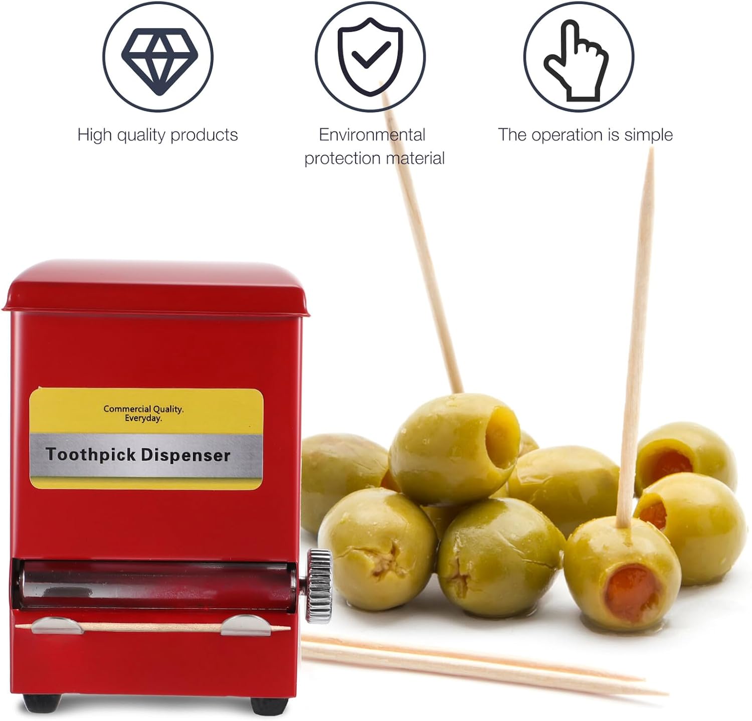 Package Include 1 x toothpick box 2 x bags of toothpicks Features -Size: About 10.50X7.00X7.00cm/4.13X2.75X2.75inch -Material: Stainless steel -Product Info:Vending machine toothpick box - It is used to place toothpicks on the dining table in the home living room to facilitate your life Toothpick Organizer. - Perfect for your home, coffee shop, restaurant, etc Toothpick Dispenser. - Adoption of , sturdy and for long-term use. - The sealed cover can keep the toothpicks and clean Creative Toothpick Container. - Light and compact, easy to use and store, it will not occupy any space Stainless Steel Toothpick Containers.Goods InformationToothpick Organizer This toothpick box is made of stainless steel material for and practical to use, just need to toothpick box when you need toothpick.Retro Toothpick Holder Very easy to use, save your time.Toothpick Cases It is a nice toothpick storage container for home or hotel use