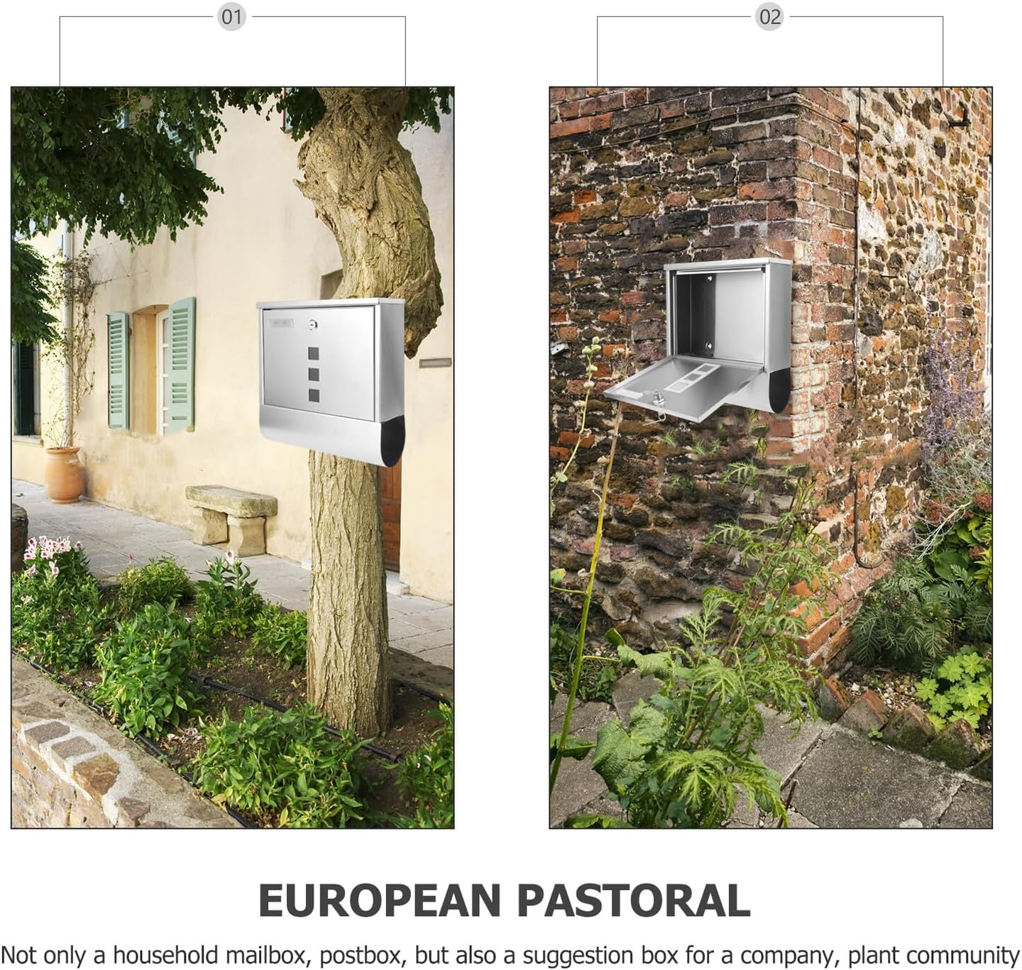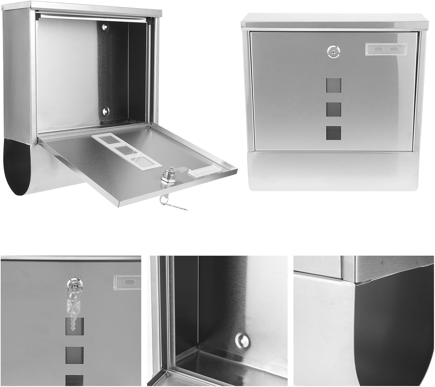 Package Include 1 x mailbox Features -Product Info:Stainless steel mailbox -Size:32.00X30.00X8.50cm/12.58X11.79X3.34in -Color:Silver -Material:Stainless steel -Made of stainless steel material and with fine craftsmanship, the mailbox can be durable and strong. -The simple style mailbox can bring a new aspect of outlook to your home, office, or garden decorative wall mounted mailboxes for outside. -You can install it on the wall or just place as you wish according to your needs mailbox with lock. -Not only a household mailbox, , but also a suggestion box for a company, plant community modern mailbox. -Suitable capacity for envelopes and mails. Meet your needs for daily correspondence wall-mount mailboxes.Goods Informationmailbox The mailbox is well polished, no burrs and does not hurt hands when used.mailbox for outside Made of stainless steel material, the mailbox is durable with simple looking.wall mount mailbox Suitable capacity for storing envelopes, newspaper, letter of complaint