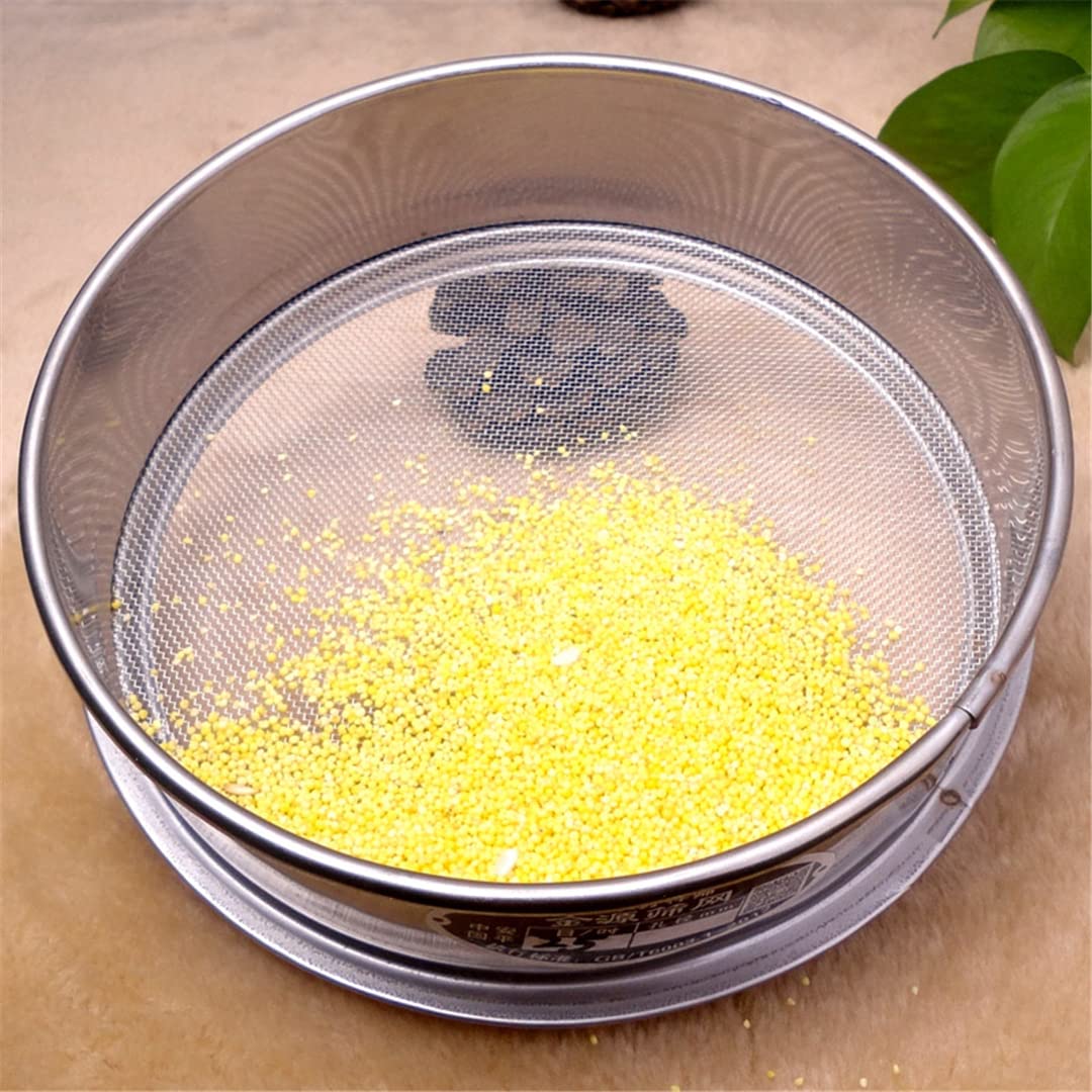 Specification: Size: Diameter 25cm, Height 6cm Material: Chrome Plated Metal Outer Frame + 304 Stainless Steel Mesh Screen Mesh Count is various available: 2, 3, 4, 5, 6, 8, 10, 12, 14, 16, 18, 20, 24, 26, 28, 30, 32, 35, 40, 45, 50, 55, 60, 65, 70, 75, 80, 90, 100, 110, 120, 130, 140, 150, 160, 180, 190, 200, 220, 240, 250, 280, 300, 320, 325, 340, 360, 400, 500, 600, 800, 900, 1000, 1800, 2000, 2300, 2800. You can choose it by “Size”. If there don't have you want in the list, you can click “Ask a question”, we will provide you customized service. Ususally 12-200 mesh count price is same, 2-10 or above 200 mesh count price will a little higher. Mesh Count is the quantity of the hole in 1 inch. Such as: if mesh count is 2, then the hole size will be 1/2inch, equal to 12.7mm. Approximately equal to 12.5mm The larger the mesh count, the smaller the mesh hole size. If you need tray & cover, please buy it separately by the link: “www.amazon.com/dp/B0B9SMBH2M”. Tray & Cover Application: When you use a mesh screen to filter the powder, if there is no tray below, the powder will be everywhere. If you filter the liquid, it is also need a tray below. If you need more quantity or customized size, please contact us before you buying. More quantity, Less price.
