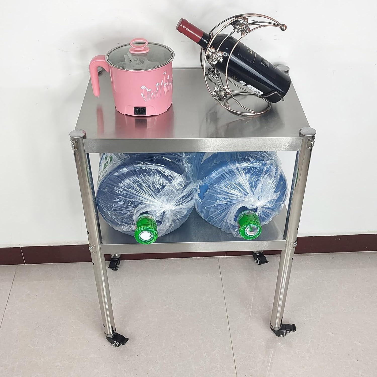 Stainless steel shelf with mute castersFour times folding processHumanised warm designSquare structureIngenious mechanics structure, strengthen the overall backbone, stable and not tippingAdjustable height, convenient storageAdjustable layer height for storing objects of different heights, making it more convenient to put things awayCrossbeam design to increase load bearingThe bottom is fixed with square steel tube, which greatly increases the load bearingProduct Name:Working TableMaterial: stainless steelProduct Size:50x40x82 centimetre/19.7x15.7x32.3"60x40x82 centimetre/23.6x15.7x32.3"70x40x82 centimetre/27.5x15.7x32.3"80x40x82 centimetre/31.5x15.7x32.3"Product content: workbench x 1, mounting accessories x 1 (the rest of the items are not included in this product)Note tips:1. Manual measurement may have error2. Due to different light, the product colour may have error3. Due to stainless steel material, there may be slight scratches and welds