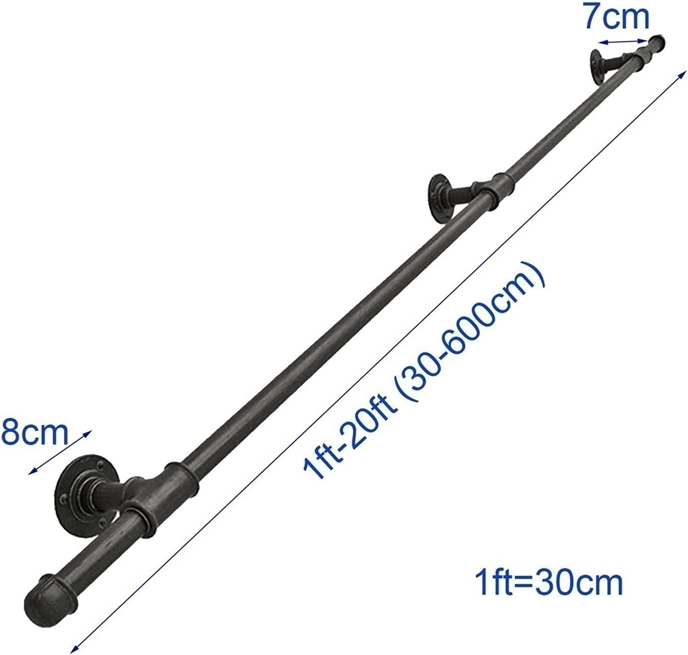 ★Do you find it difficult to walk up the steep, slippery or inconvenient steps in your home or porch stair? Are you on the lookout for a reliable stair railing system for your interior or exterior steps?★The handrails can be used indoors and outdoors, dry and wet environment and anywhere you need a solid grip. Zero maintenance, easy to install, solid and sturdy, and good looking when in place. It is a stylish addition to any home or place of business.★Not only can you place it on the stairs, it can also be placed in high humidity rooms such as kitchen bathroom and garden. ★Wrought Iron Staircase Handrails Detail- Product Name: Stair Handrail- Material: wrought iron, galvanized pipe- Colour: Black- Length: 1ft-20ft /30-600cm (Products are divided according to length: 1ft-4ft is divided into 1 part, 5ft-20ft is divided into multiple parts, You can also combine multiple kits to create longer lengths, support custom size)- Distance to the wall: 7cm/2.76in- Chassis Diameter: 8cm/3.15in- Diameter: Approx. 1.3 \u2033 (3.2cm)- Includes wall bracket and mounting material-Applicable objects: the elderly, children, pregnant women, people with reduced mobility, etc.▶▶Products include: handrails, screws, flanges and complete mounting accessories.★★★Tips1. When measuring manually, the product size may show a physical error of 2-3 cm.2. Welcome to our shop! If you have any specific product queries, please contact ours, please rest assured, we are a professional manufacturer of Handrail
