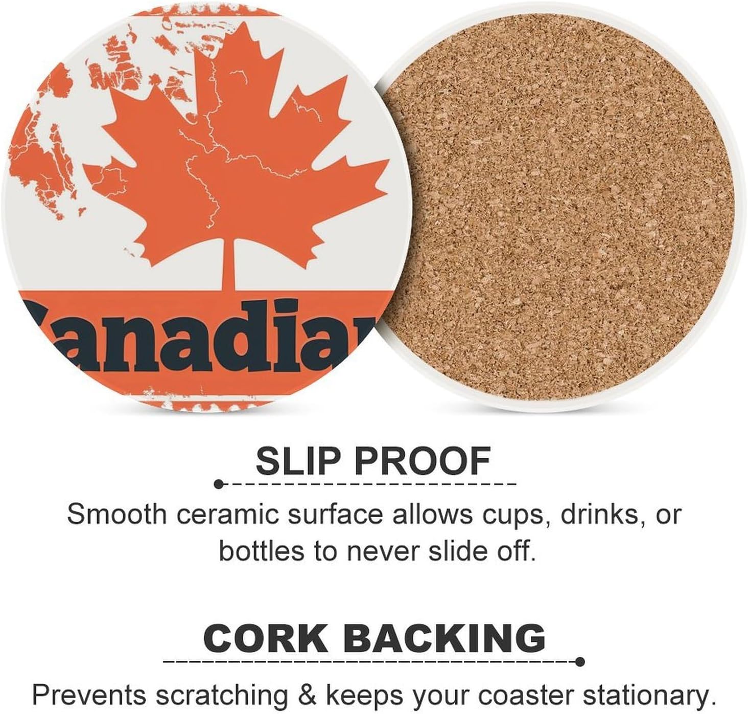 Cute Printed Round Drinks Absorbent Ceramic Coaster with Cork Base Suitable for Kinds of Mugs, Cups, Prevent Tabletop Wear And Scratches, and is Easy to Clean