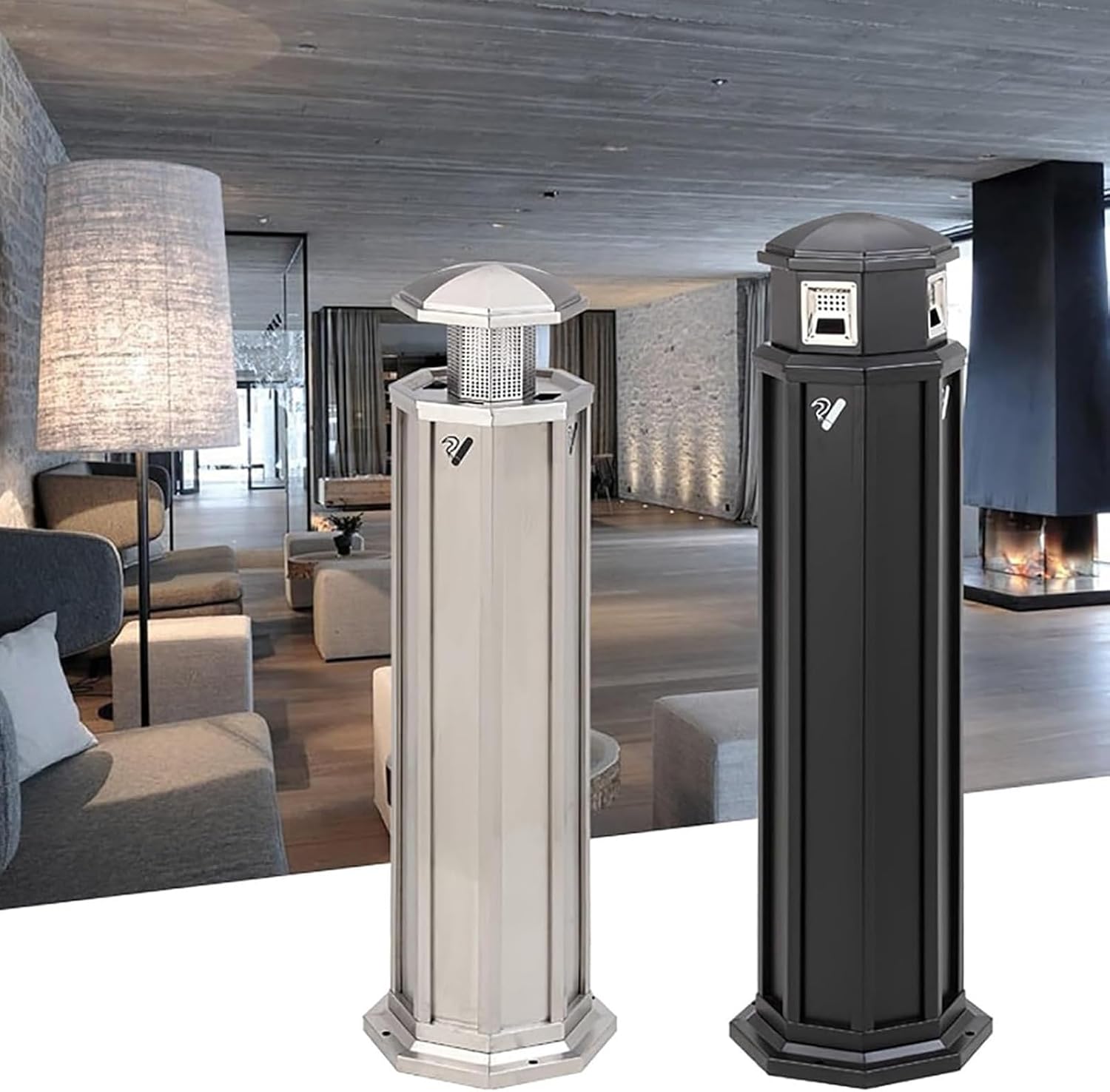 LINKGLSIMR Floor Standing Ash Tray can is not only space-saving and sturdy, but it is also very easy to clean by emptying the sheet metal inner bucket. The base can be fixed and fixed on the ground with screws, which is firm and stable. Thanks to its cleverly designed rainproof top, this ashtray keeps butts dry even during wet weather, maintaining cleanliness.Name: Cigarette butt column/vertical ashtray/floor-standing ashtray/independent trash can/garden outdoor ashtray, stainless steel smoking barrel/commercial trash canProduct Material: MetalColor: Black , SilverSize: 107x30x26cm/42.1x11.8x10.2inApplicable places: star-rated hotels, banks, clubs, office buildings, supermarkets, shopping mallsPackage Content:- 1 x Floor-standing ashtray- 1 x AccessoriesNotice:1.Because it is processed by hand, the finished product usually has an error of 1-2 cm, please understand.2.Due to the light and screen setting difference, the item's color may be slightly different from the pictures.3. We only have Standing Ashtray Outdoor, other products are only used as scene props for reference.