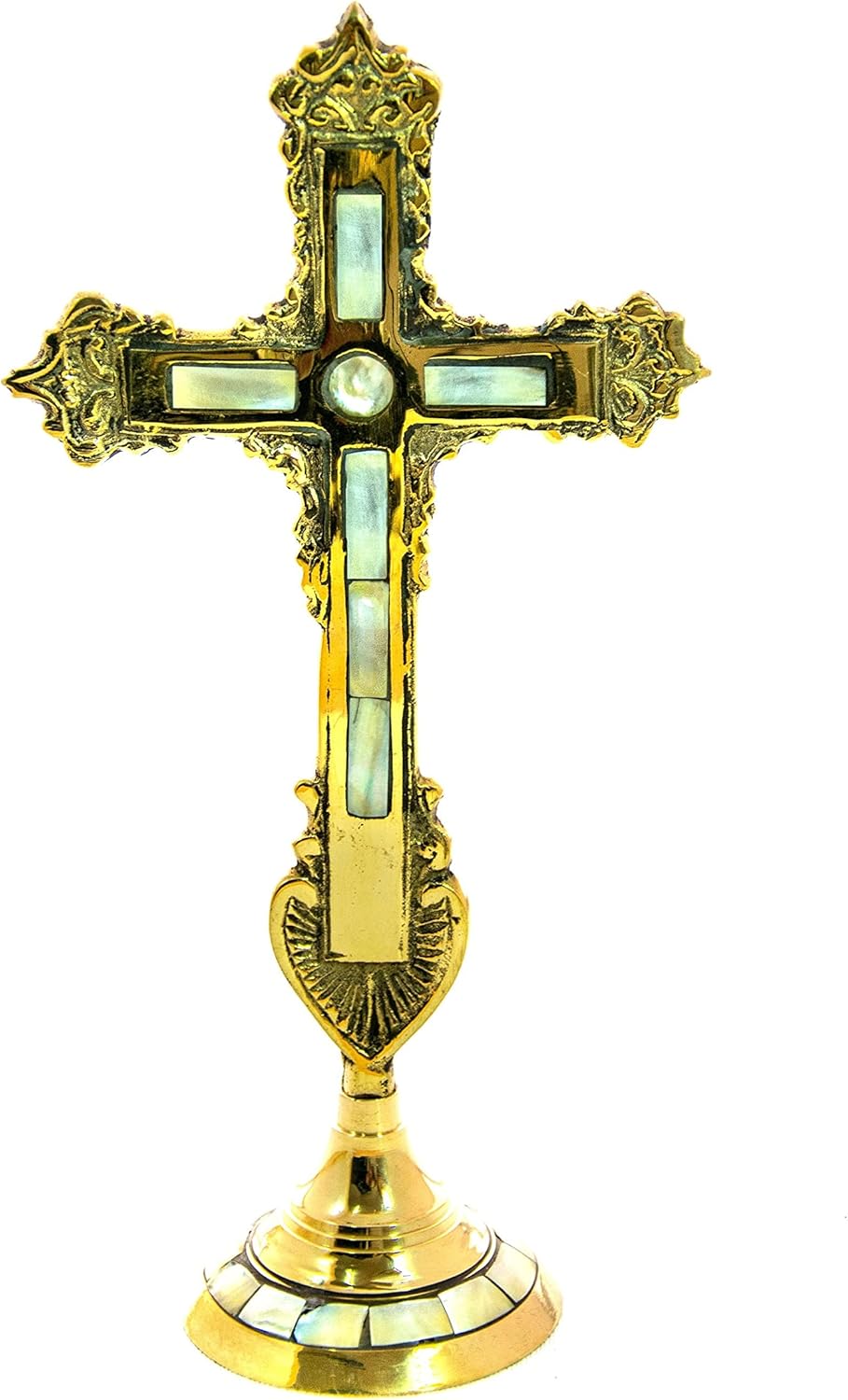 Standing Table Altar Crucifix, Jesus Christ Brass Blessing Cross, Handmade Greek Orthodox Byzantine Gold plated Holy Cross, religious decor