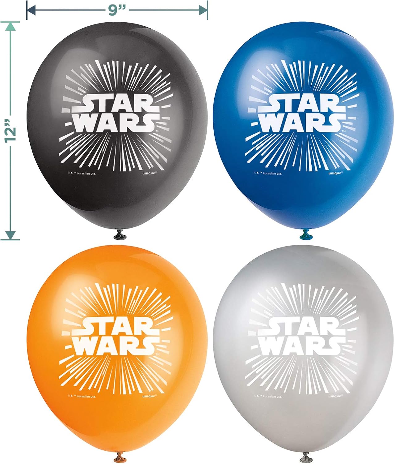 | Pattern | Darth Vader & Stormtrooper (plates), TIE fighter (napkins), Chewbacca (cups), Millennium Falcon (table cover), galactic battle scene (table cover and balloons) |