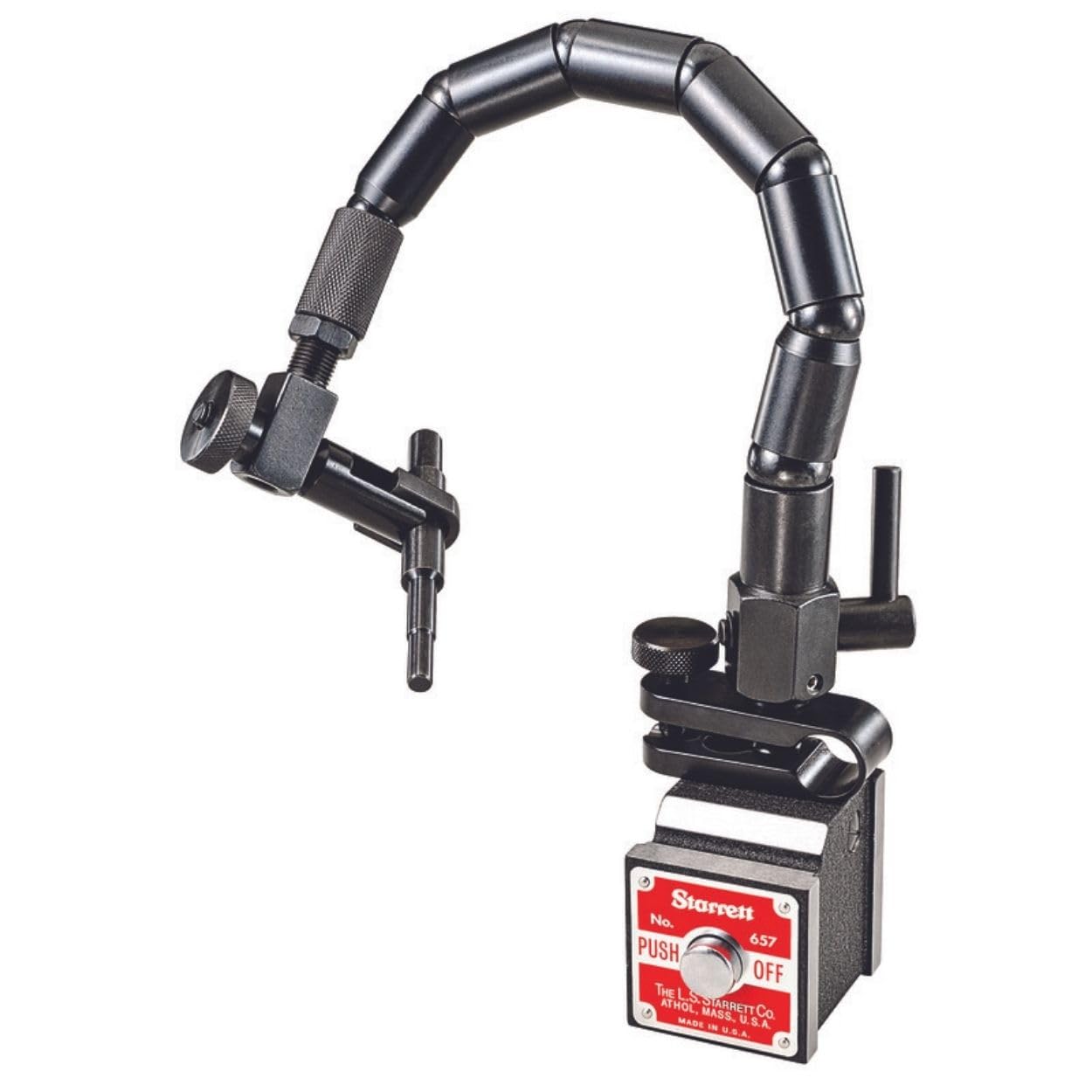 The Starrett Magnetic Base Indicator Holder is an epitome of engineering excellence, combining functionality with ease of use. Crafted with the user's needs in mind, this holder ensures that every measurement is both accurate and adaptable to varying work conditions. At the heart of this tool lies the Swivel Cap Slot, a thoughtfully designed feature that permits a 90-Degree post travel. This allows the post to smoothly transition to a horizontal position, facilitating a broader range of measurement angles and making it an indispensable tool for those intricate measurement tasks. Further enhancing its flexibility is the capability of the post to rotate a complete 360-Degree. This total rotation ensures that regardless of the work scenario, the holder can be adjusted to the ideal position, making it a versatile choice for diverse applications. The Starrett Magnetic Base Indicator Holder is not just a tool; it's a commitment to precision and adaptability. Whether you're an engineer, a craftsman, or a hobbyist, this holder promises to deliver accuracy and ease in every measurement. Its robust design and user-friendly features make it an essential addition to any toolkit.