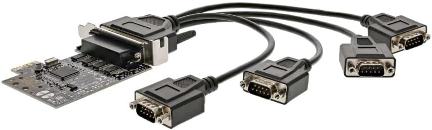 The StarTech 4-Port Serial Card and 4-Port USB to Serial RS232 Adapter bundle provides versatile serial connectivity for both desktop and industrial environments. The PCIe serial card adds 4 native RS232 ports to a computer using a single PCIe slot. Its dedicated chipset boosts efficiency while the included profile brackets allow installation in full or low profile slots. The rugged, metal-housed USB adapter converts 1 USB port into 4 serial RS232 ports. Its COM port retention, DIN rail clips, and wall mounts enable flexible mounting. Together these devices complement each other to enable serial device connectivity for a wide range of computers and installations. The PCIe card brings native serial to desktops while the USB adapter offers industrial-grade ports for harsh environments. Their combined 8 ports also allow connecting multiple serial devices. With speeds up to 2.5Gbps, 256-byte FIFO buffers to prevent data loss, and plug-and-play connectivity, this bundle provides a comprehensive serial connectivity solution.