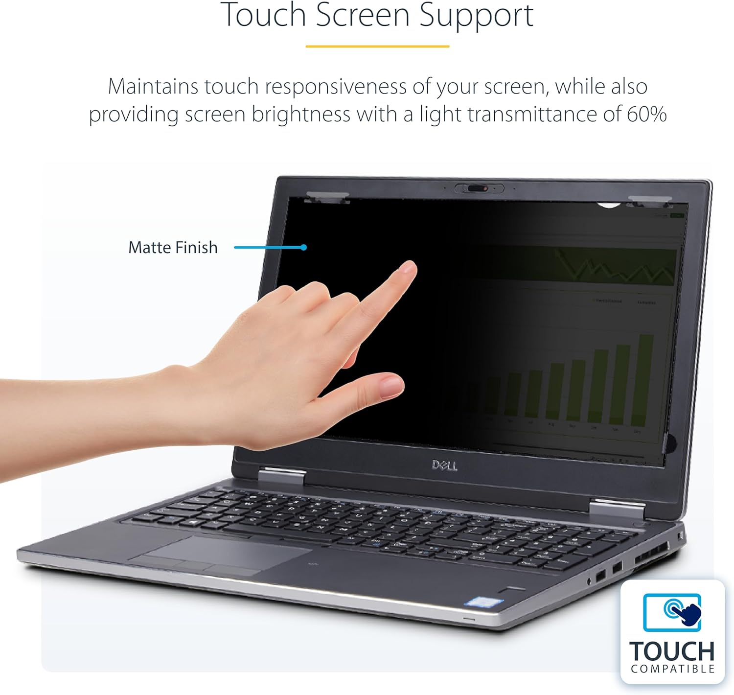 This Laptop Privacy Screen is designed to work with laptops with 16-inch displays and 16:10 aspect ratio. This privacy filter is a convenient and cost-effective solution to protect confidential data from unwanted viewers. The privacy shield darkens your computer's screen from the side while providing a clear viewing angle of 60 degrees (+/- 30 degrees from center) to the user. The feature enables you to quickly flip-up the privacy filter to share contents without uninstalling the filter. Your computer touch responsiveness is preserved by the ultrathin yet robust security shield, enabling seamless use. The privacy shield has a light transmittance of 60% providing optimal screen brightness and enhanced levels of privacy. Install the privacy screen protector using the included adhesive strips or flip-up tabs. This unit is designed for use displays that have raised bezels. Reduce eye strain and improve visual comfort by reducing blue light exposure. The 16-inch laptop screen filter blocks up to 51% of the blue light emitted from the display.