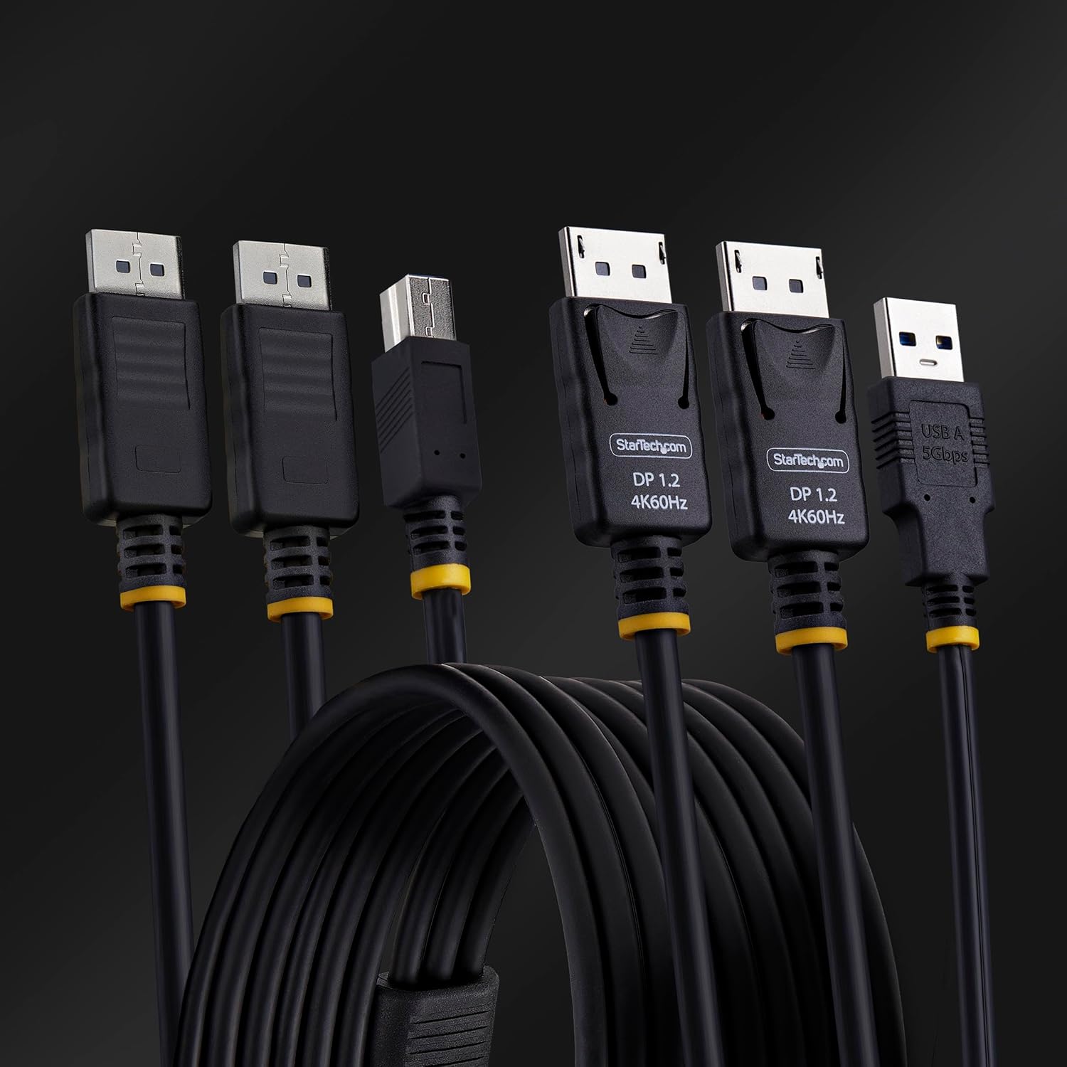 KVM cable provides a reliable connection between a computer and a dual-monitor DisplayPort KVM switch with USB 5Gbps support. Simplify cable management by combining multiple connections into a single bundle. This minimizes the number of individual cables that need to be handled, making installation faster and more efficient. They are perfect for environments where KVMs are essential, such as data centers, server rooms, edge networking, and remote management setups, helping to reduce cable clutter and maintain an organized workspace. This KVM cable works with any operating system, including Windows, macOS, ChromeOS, and Linux. It also supports all major hardware platforms, such as Intel, AMD, and Apple Silicon. KVM combo cable is DisplayPort 1.2 compliant, supporting resolutions up to 4K at 60Hz, HDR10, and DisplayPort audio for high-quality audio/video experience. The USB 3.0 Type-A to Type-B connector provides fast data transfer speeds of up to 5Gbps.