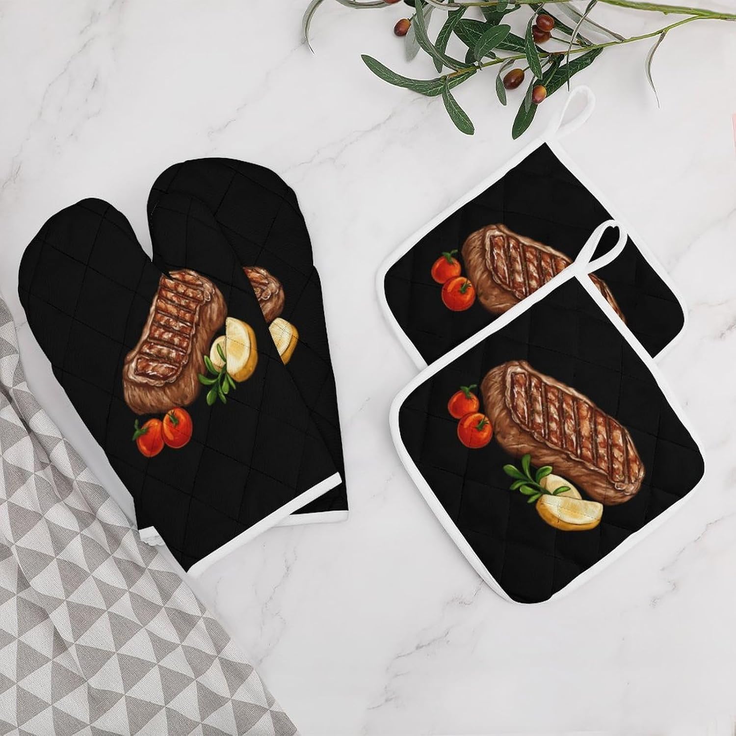 This kitchen insulation four-piece set is designed for you who love cooking. It includes 2 anti-scalding gloves + 2 square pot mats, which can withstand high temperatures and prevent scalding without hurting your hands! The simple design is both practical and can enhance the appearance of the kitchen. It can also be used as a placemat, coaster or kitchen decoration. The four-piece set meets a variety of needs and is a thoughtful gift for newlyweds and food lovers!