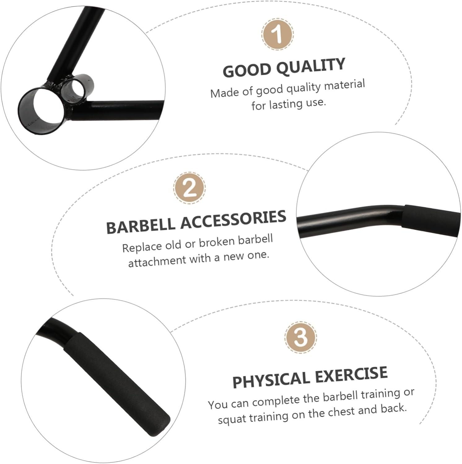 Package List 1 x barbell attachment Features -Material: steel Barbell Handle -Color: Black Core Strength Trainer Handle -Size: 63.00X35.00X8.50cm/24.76X13.76X3.34in Deadlift Barbell Handle - Suitable for exercise in home gyms, gymsand training clubs . - Can be used to train your arms, shouldersand back muscles Deadlift Bar. - Comfortable and not handle, easy andpractical for everyday training Squat Workout Handle. - Compact, easy to carry and exerciseanytime anywhere Workout Training Handle. - Adopt steel material for durableuse Barbell Bar.Goods DescriptionWorkout Training Handle It will provide convenience in toning and molding muscle in your back, arm,shoulder, elbow, wrist and other area.Deadlift Barbell Handle This item is a fitness barbell attachment.Deadlift Handle A must have accessory for home and gymbodybuilder