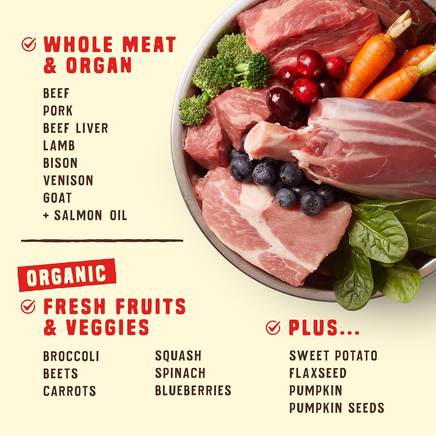 Dog's naturally crave meat much like they ate in the wild. Our Wild Red Raw Blend kibble is packed with responsibly sourced, animal-based protein from multiple meat sources, coated with freeze dried raw and blended with raw freeze dried nuggets . This provides a protein-rich taste dogs crave with the nutrition they deserve. With low carbohydrates and no fillers, legumes, artificial colors, flavor or preservatives these recipes will feed your dogs wild side.