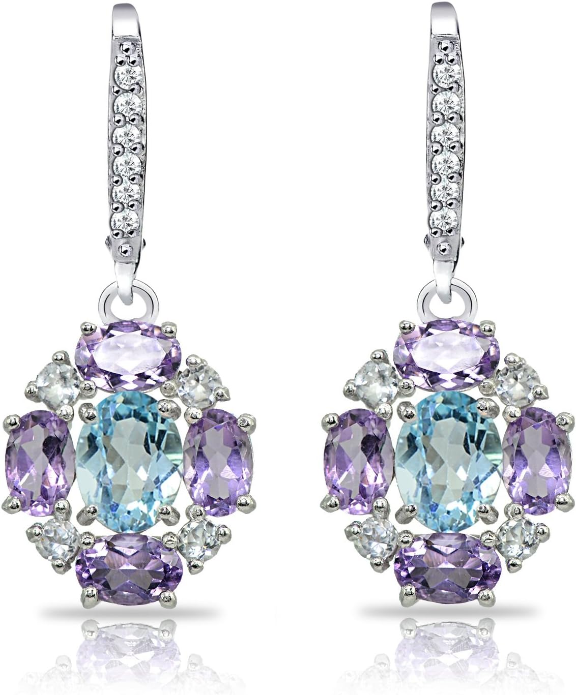 Sterling Silver Simulated or Genuine Gemstones Oval Leverback Earrings with White Topaz AccentsThese stunning statement earrings are a must have addition to any jewelry collection and are the perfect pair for luxury evening wear. These leverback earrings feature 7x5mm oval center stones with 5x3mm oval gemstones and round white topaz accents. These dangle earrings are crafted of fine sterling silver and are nickel and tarnish free. The earrings can be purchased as dangle earrings for women and dangle Earrings.Choose from the Following Colors: Simulated Opal and Blue TopazSimulated Opal and AmethystAmethyst and Blue TopazBlue Topaz and PeridotCitrine and Peridot