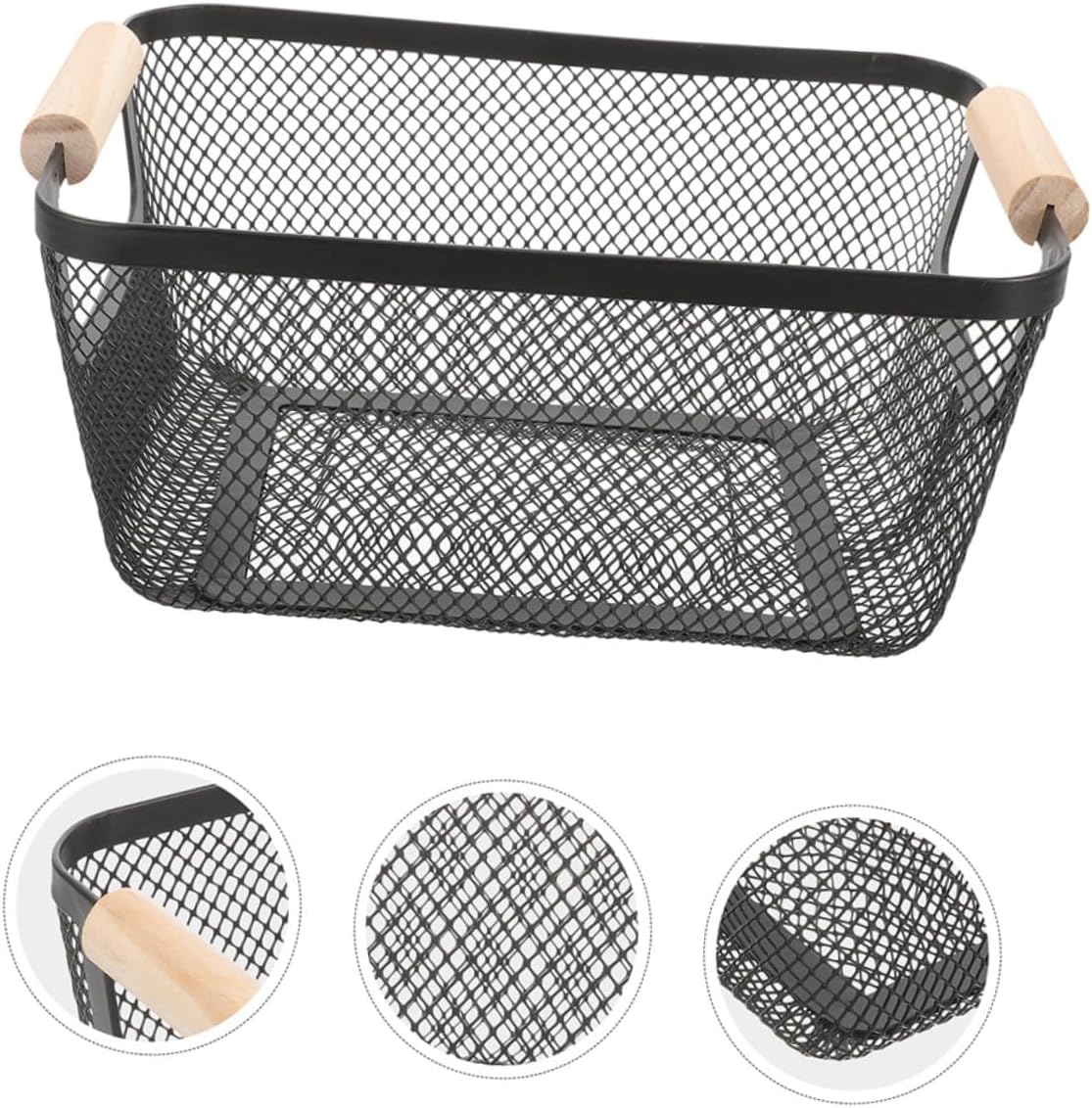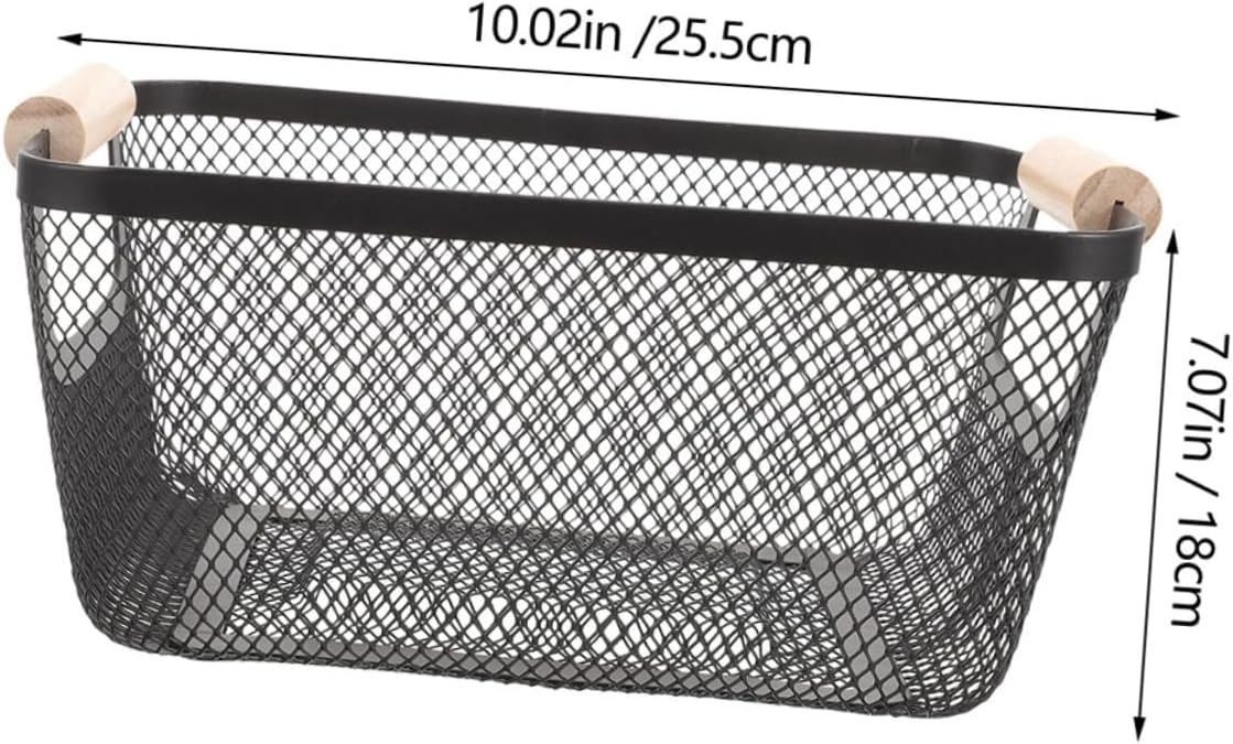 Package List 2pcs x storage baskets Characteristics -Allpurpose storage: excellent for organizing various items, ensuring a tidy and orderly home environment metal storage basket -Sophisticated design: the metal mesh basket with nordic wood handles offers a modern and elegant look kitchen storage basket -Size:25.50X18.00X12.00cm/10.02X7.07X4.72in potato storage bins -Multiscene application: suitable for use in the kitchen, bedroom, and living room, meeting diverse needs and enhancing practicality hanging storage basket -Material:Wood, iron wire storage bucket -Spacesaving: maximizes space utilization, making your home feel more spacious and comfortable bathroom basket - : made from materials, this basket is designed to last and resist wear and tear fruit picking basket -Color:Black metal mesh basketGoods Informationmetal mesh basket Keep your home organized with this functional storage organizer.fruit picking basket The metal mesh construction provides durability and breathability, making it ideal for storing a variety of items.hanging storage basket The wooden handle adds a touch of elegance, making it suitable for any room in your home, to the laundry room