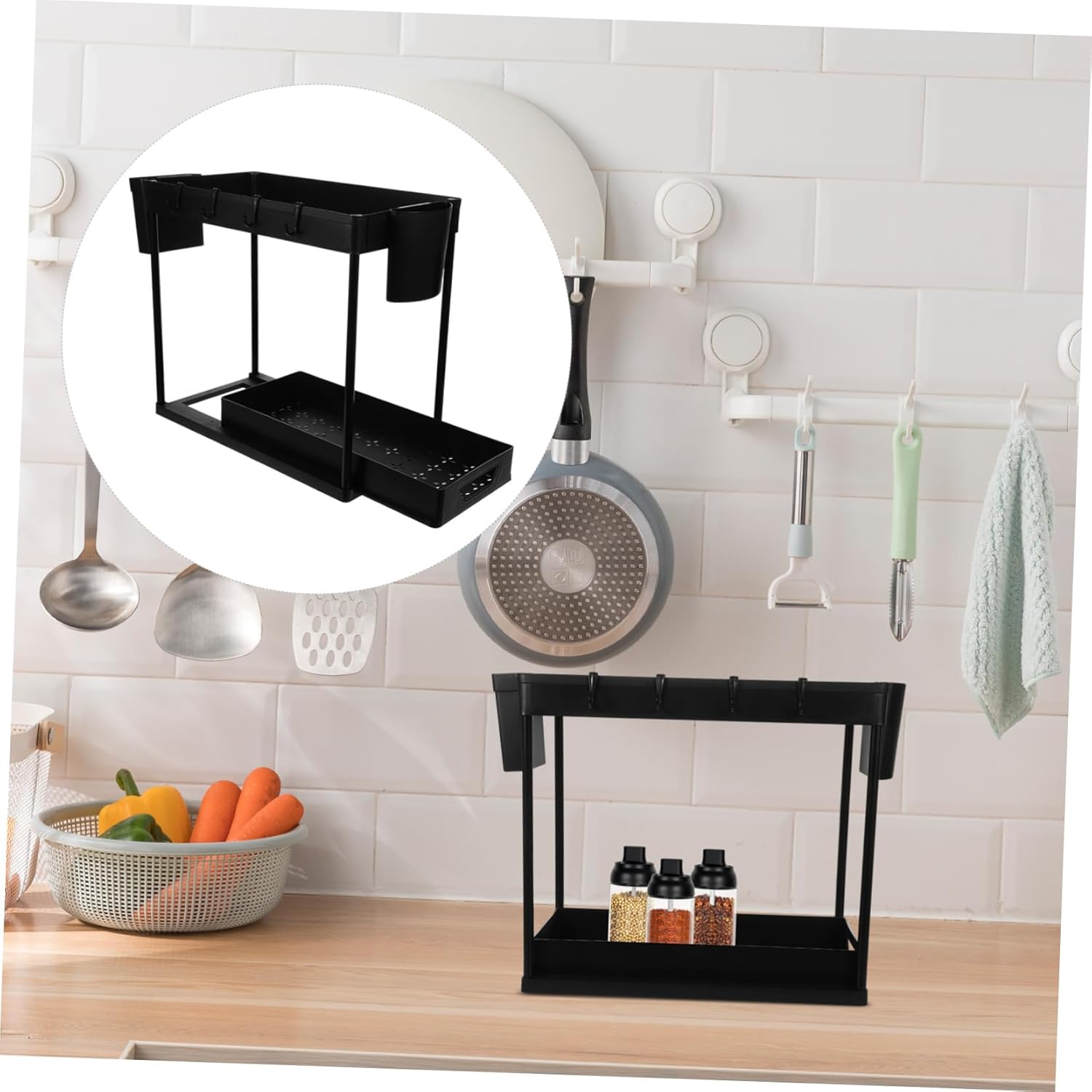 Package List 1 x storage rack Characteristics -Color:Black Retractable Sink Storage Rack -Size:39.60X36.00X21.50cm/15.56X14.15X8.45in Sliding Storage Organizer -Material:Plastic Kitchen Supplies - Owning the and break resistance ability, the kitchen cabinet organizer is very Under Sink Shelves. - It uses a guardrail prevent tableware from accidentally falling, you can use with confidence Sink Storage Rack Holder. - It is designed to be pulled out, which is more convenient to use than other normal storage organizers Telescopic Sink Holder. - Layered design brings the larger capacity, the material makes it strong and Under Sink Drawers. - The storage shelf is exquisite in workmanship, beautiful and , can match your modern designed kitchen Storage Drawers Under Sink.Goods InformationKitchen Organizer Are you annoyed at endless messy kitchen countertops? If you are looking for a multifunctional storage rack, our organizer rack is sturdy and trustworthy enough to do multiple jobs.Under Sink Storage Bins Dual-layer design, plastic material, steady structure, it must meet your needs to store seasoning bottles in kitchen, soap, shampoos, in bathroom, etc