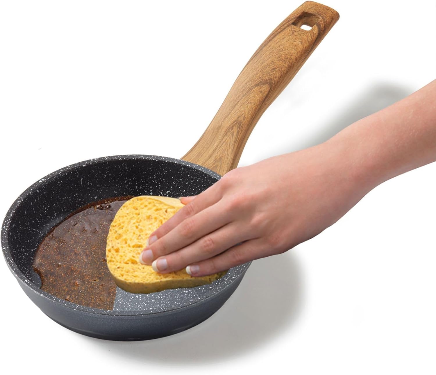 STONELINE - The original! Healthy cooking and frying without fat. Wood is a trendy style element to add a warm touch to any kitchen setting and create a relaxing and balanced atmosphere. STONELINE Back to Nature combines these features. The products in an elegant wood look are also an eye-catcher on the indoor chalkboard. This pan is not too small and not too big. Thanks to the special Stoneline non-stick coating, your food can be prepared with or without grease and oil and without sticking them from the pans. Whether you are cooking on glass ceramic, induction, electric or gas. No stubborn residue remains in pots with the original STONELINE coating and the easy hand washing saves time and effort. 1 x frying pan, diameter approx. 20 cm. Height: approx. 4.2 cm, approx. 1.0 litres. The main advantages of STONELINE cookware at a glance: Scratch-resistant STONELINE non-stick coating for cooking and frying without fat and oil. Optimal result of roasting and crispy roasted meat. Also suitable for vegetarians - vegetables stay crispy and juicy. No burning and no attack. Super easy to clean. Extra strong base without deformation. Base thickness: 4.5 mm for all 5 Suitable for hobs, including induction, oven-safe up to 180 °C. Material: Aluminum Cleaning and maintenance tips: Before the first use, it is recommended to wash the pots or pots thoroughly with a little water and a mild detergent. After that, spread a few drops of cooking oil on the coating with a paper cloth. During further use, grease or oil can be avoided. Thanks to the easy clean effect, we recommend cleaning by hand. Simply clean with warm water, hand detergent and a soft sponge.