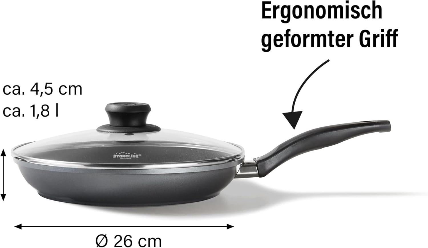 | Model Name | STONELINE® Bratpfanne 26 cm, mit Glasdeckel, induktionsgeeignet |