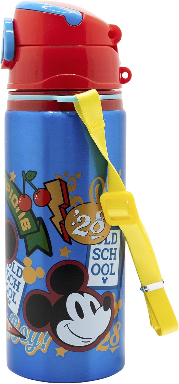 Stor Reusable Aluminium Pop-up Bottle with Shoulder Strap 730ml | MICKEY TRUE CHAMPIONS