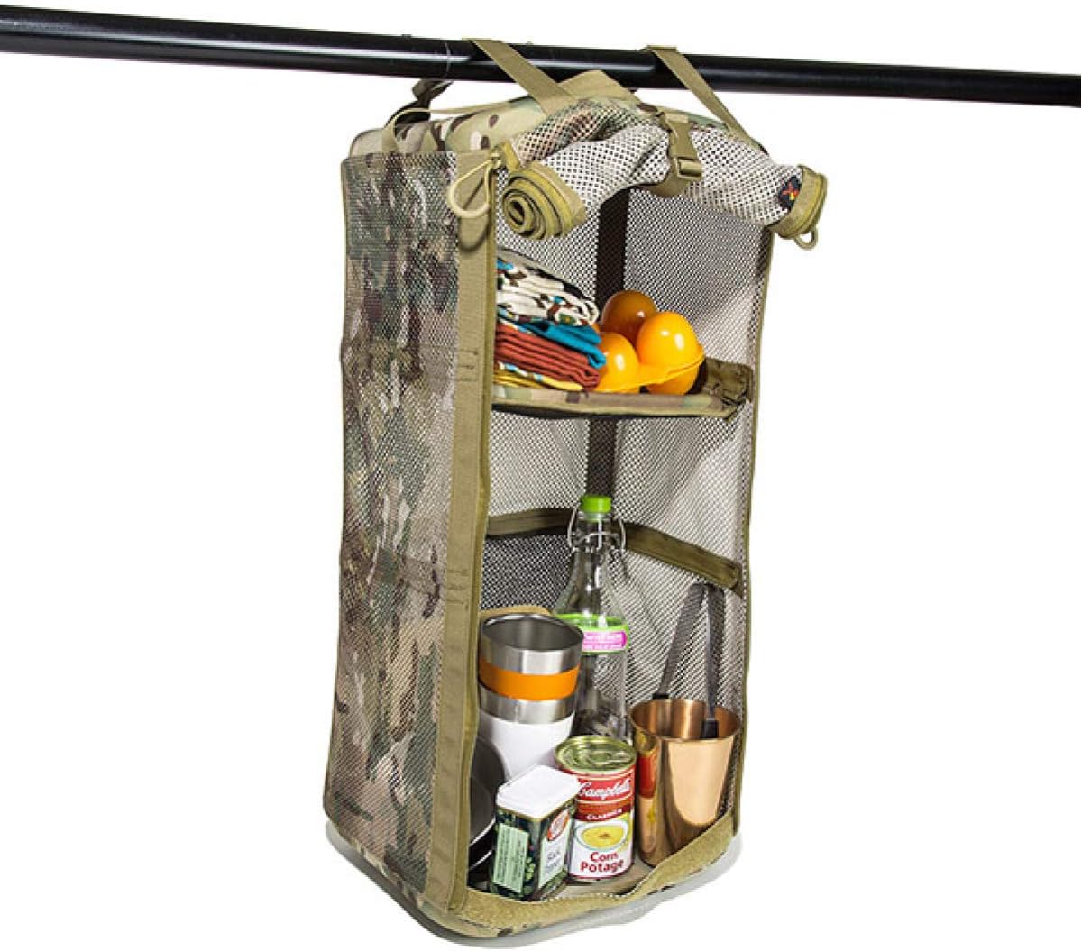 A vertical storage shelf and camping shelf for hanging storage. The divider can be changed to 1 to 3 rooms depending on the storage content, and the thickness is only 3.1 inches (8 cm). When you close the front shade, you can also use it as a mosquito net. Convenient for storing washed dishes, leftover foods and more. A convenient item that can be used around the kitchen or in a tent.