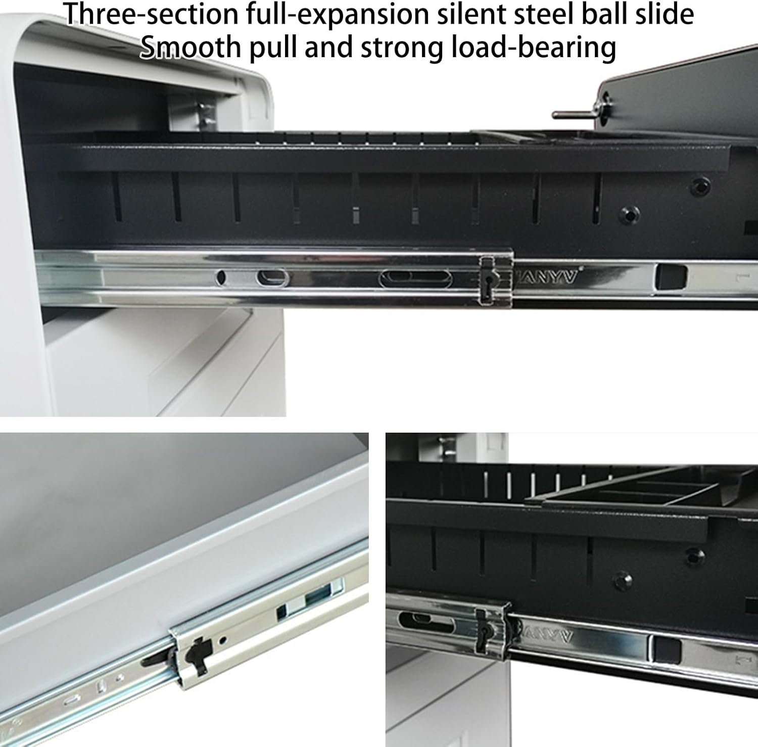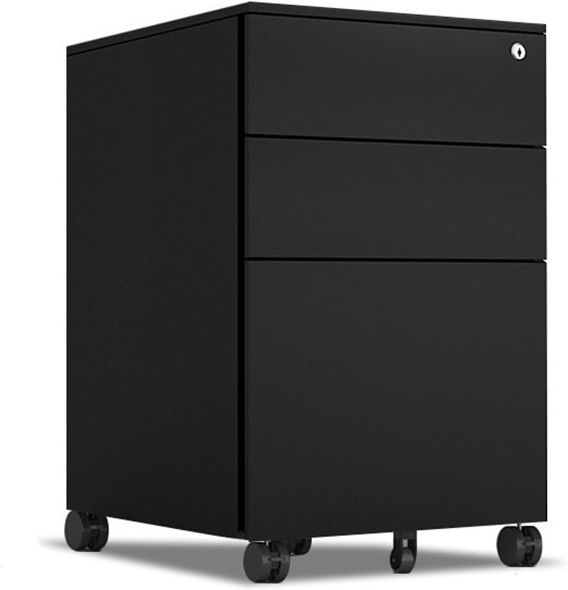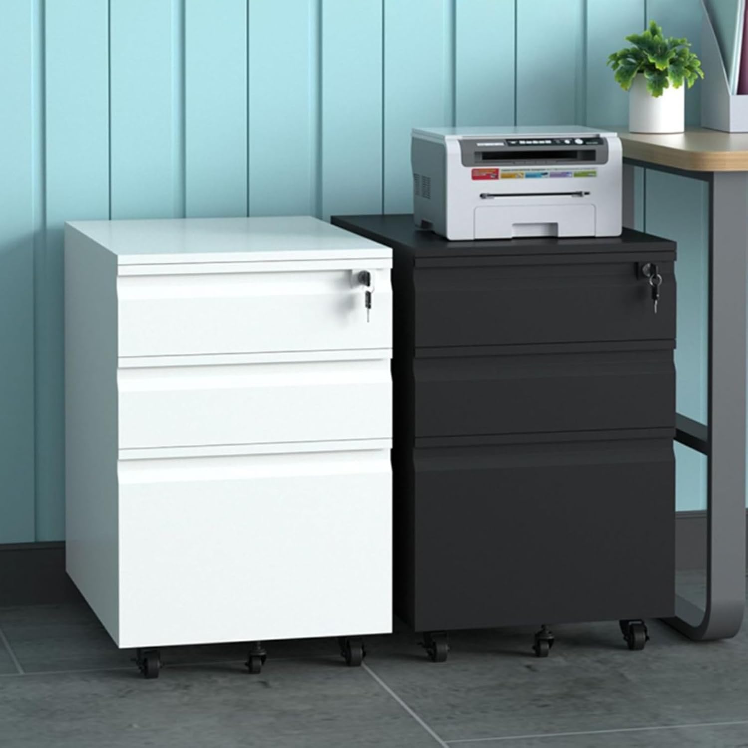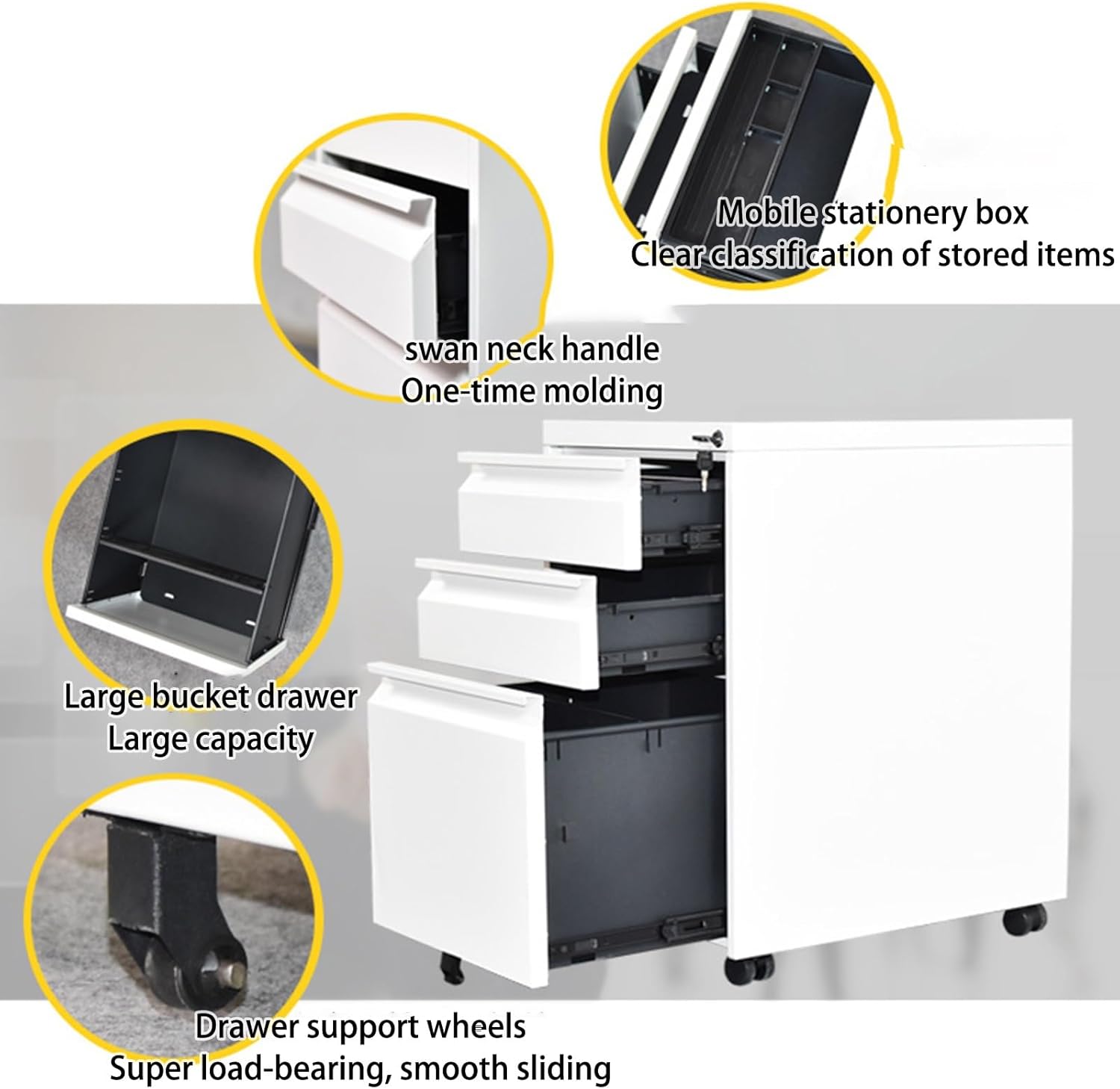 Drawer File Cabinet:Enhance your office organization with this durable file cabinet designed to meet your filing needs. With a sturdy construction, this cabinet is built to last in any busy office environment. Effortlessly access your documents with the smooth and sturdy drawer slide ensuring efficient organization of your files. The two front wheels equipped with brakes allow you to securely position the cabinet wherever you need it. Maximize storage capacity with three spacious drawers, perfect for storing a large number of files or office supplies. The cabinet is made of cold rolled steel and comes with a lock for safe storage.