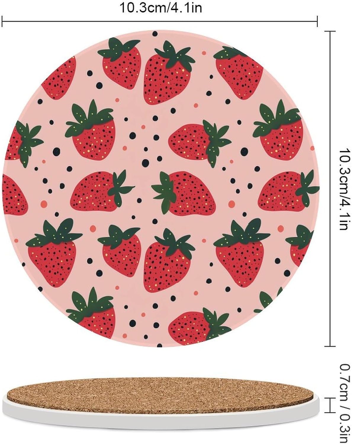 Cute Printed Round Drinks Absorbent Ceramic Coaster with Cork Base Suitable for Kinds of Mugs, Cups, Prevent Tabletop Wear And Scratches, and is Easy to Clean