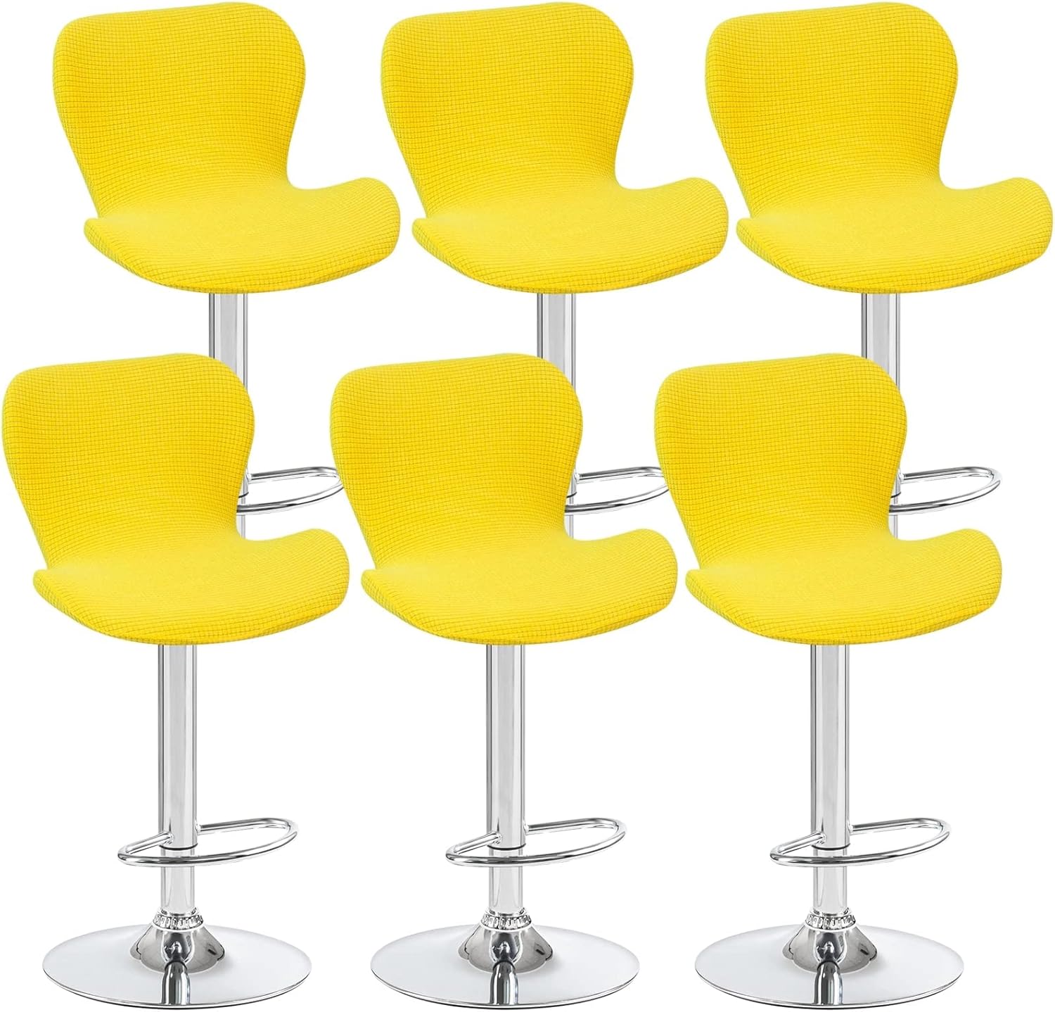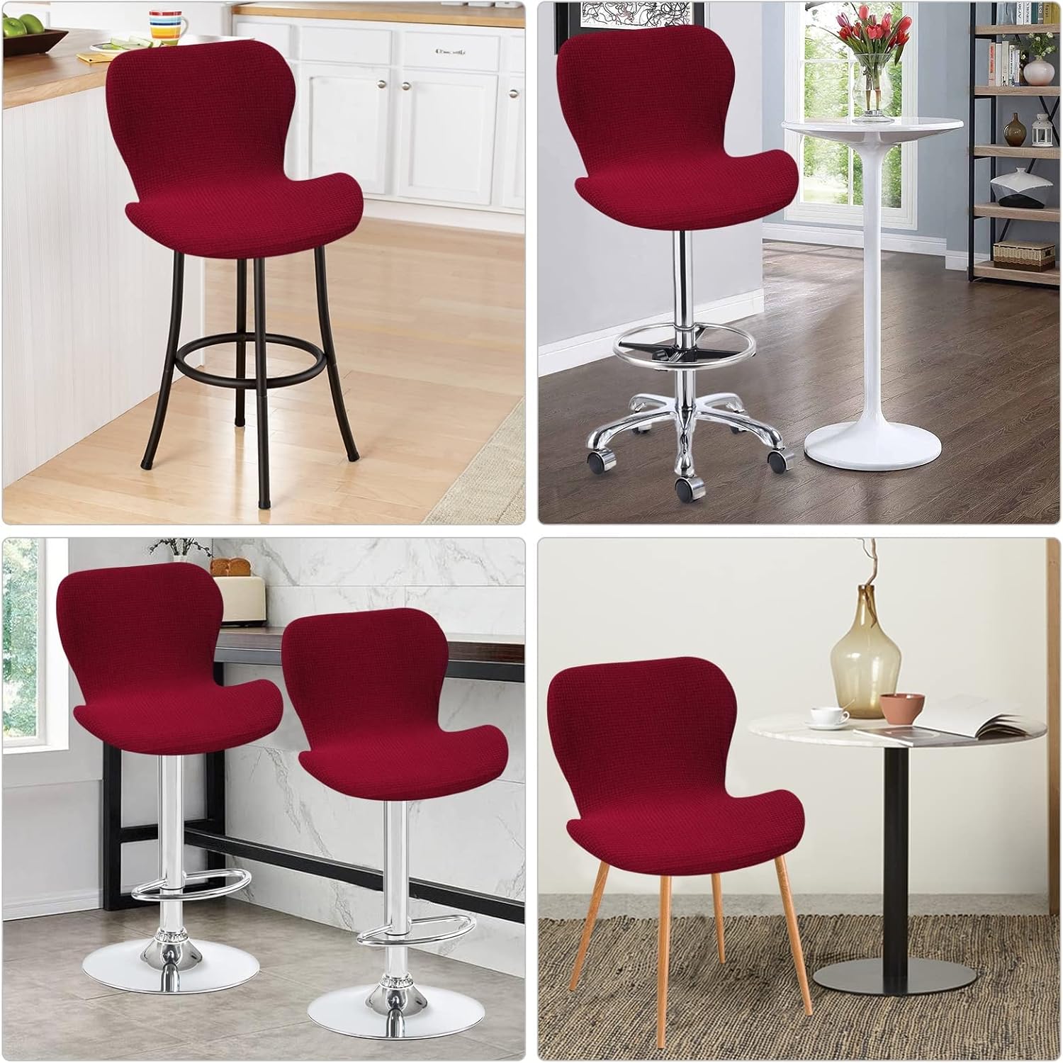 Features:1. Our dining chair covers are easy to install and remove, suitable for indoor use, and are not recommended for foldable chairs.2. Our dining room chair slipcovers will protect your chairs from stains, dirt, spills and pet's scratch and bite, perfect for homes with kids and pets.3. Universal spandex chair covers can be used for kitchen, dining room, wedding, ceremony, banquet, dinner, celebration, hotel, living room, bedroom etc.Product Name: 2/4/6pcs Chair Cover for Bar Stool, Swivel Chair, Low Back Counter ChairSeasonal Use: All SeasonsSuitable Places: Living Room, Bedroom, Dining Room, Home OfficeSpecial Feature: Washable, Soft Touch,Easy Care,Stretch FitStyle:ContemporaryPattern:SolidProduct Care Instructions:Machine Wash, Do Not Bleach,Tumble DryClosure Type:ElasticFabric Type:92% Polyester, 8% Spandex With Elastic BandFurniture Cover Type:Curved Back Dining Chair Cover Slipcovers,Makeup Vanity Chair Cover, bar stools covers with backs Swivel Chairs Cover ▶Please measure the size of the chair before purchasing.▶PLEASE NOTE1. Due to manual measurement, the difference is 1-3 cm2. Please note that due to the influence of light and screen, there may be slight chromatic aberration. Subject to the actual receipt
