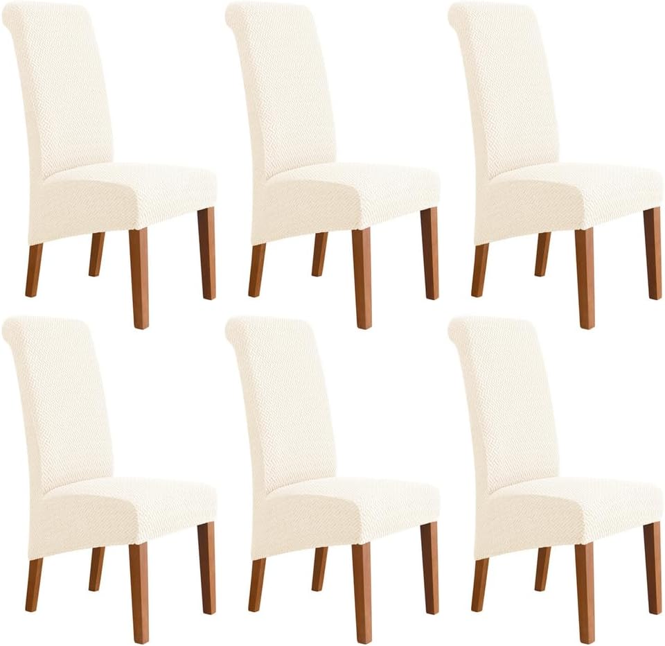 Our chair covers use premium 92% polyester and 8% spandex fabric material, it is not only highly elastic to fit the majority chairs, but also thick enough to protect chairs again dust, stains and other damages.You may not wash your chair, but you can wash its cover! It's easy to keep it clean by machine washing in cold.Widely ApplicationIdeal for indoor and outdoor dining room, kitchen table, living room, bedroom, office, hotel, weddings, banquets, ceremonies and parties, etc.Dining chair cover will fit most of the Parsons chair,high back chair.CHAIR COVER SIZEChair back height: 65-75cmChair back width: 35-48cmChair seat Length: 38-46cmChair seat width: 38-46cmChair front seat thickness: 5-13cmChair back seat thickness: 15-20cmPlease check the size of your chair before orderingName: High Back Parsons Chair CoversStyle:ModernPattern:SolidCrafts: reactive printing and dyeingSpecial Feature: Removable, Stretch, Soft, ,Washable,Stretch FitClosure Type: Elastic bandMaterial: polyester + spandexColor: Beige, dark gray, green, gray, khaki, coffee, red, blue, blackWeight: about 160g (1 piece)Suitable for: all seasonsPackage includes: 2/4/6 x chair cover (excluding chairs)Please Attention- Due to different light and screen, the color of the item may be slightly different from the image.- Due to manual measurement, please leave a distance of 1-3 cm. Please understand us, thank you very much.