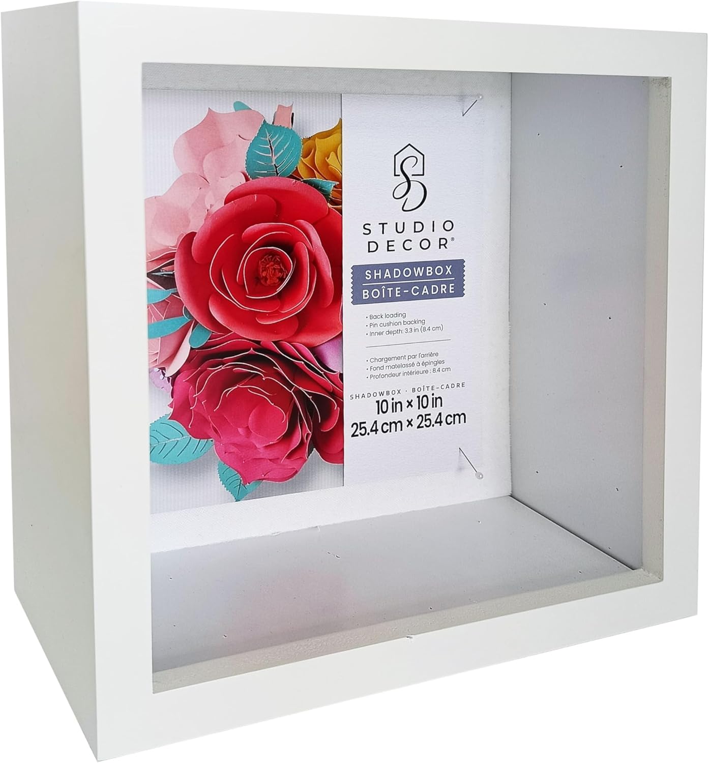 This shadow box from Studio Decor is the perfect size to show off your crafts and artwork. The pin cushion backing and deep profile allow you to display art and items with more depth.
