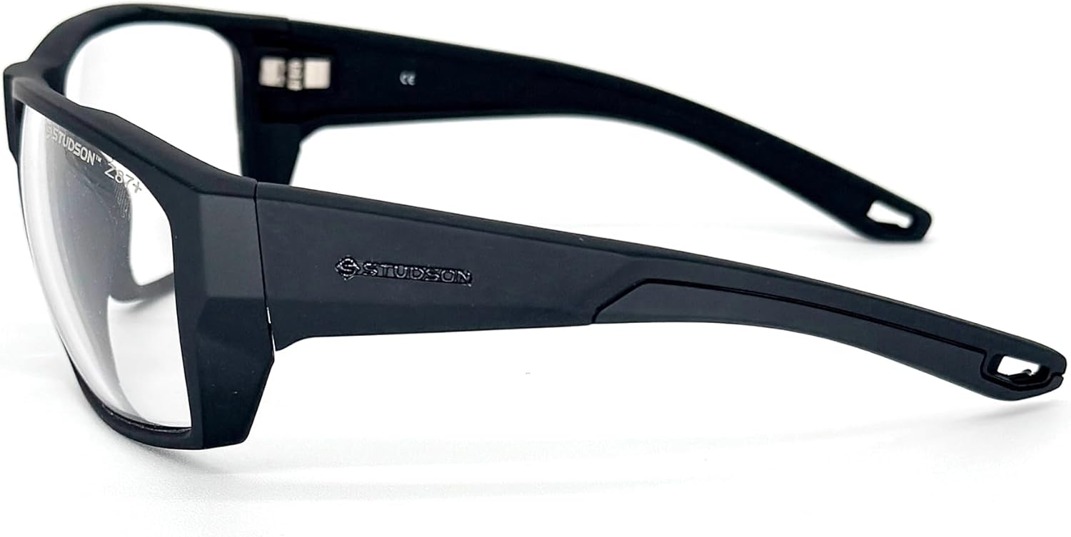 STUDSON Guardian Safety Glasses - ANSI Z87+ Rated Impact Protection - Scratch-Resistant Polycarbonate Lenses - Adjustable Non-Slip Fit - Lightweight Wraparound Frame - One Size (Black/Clear)