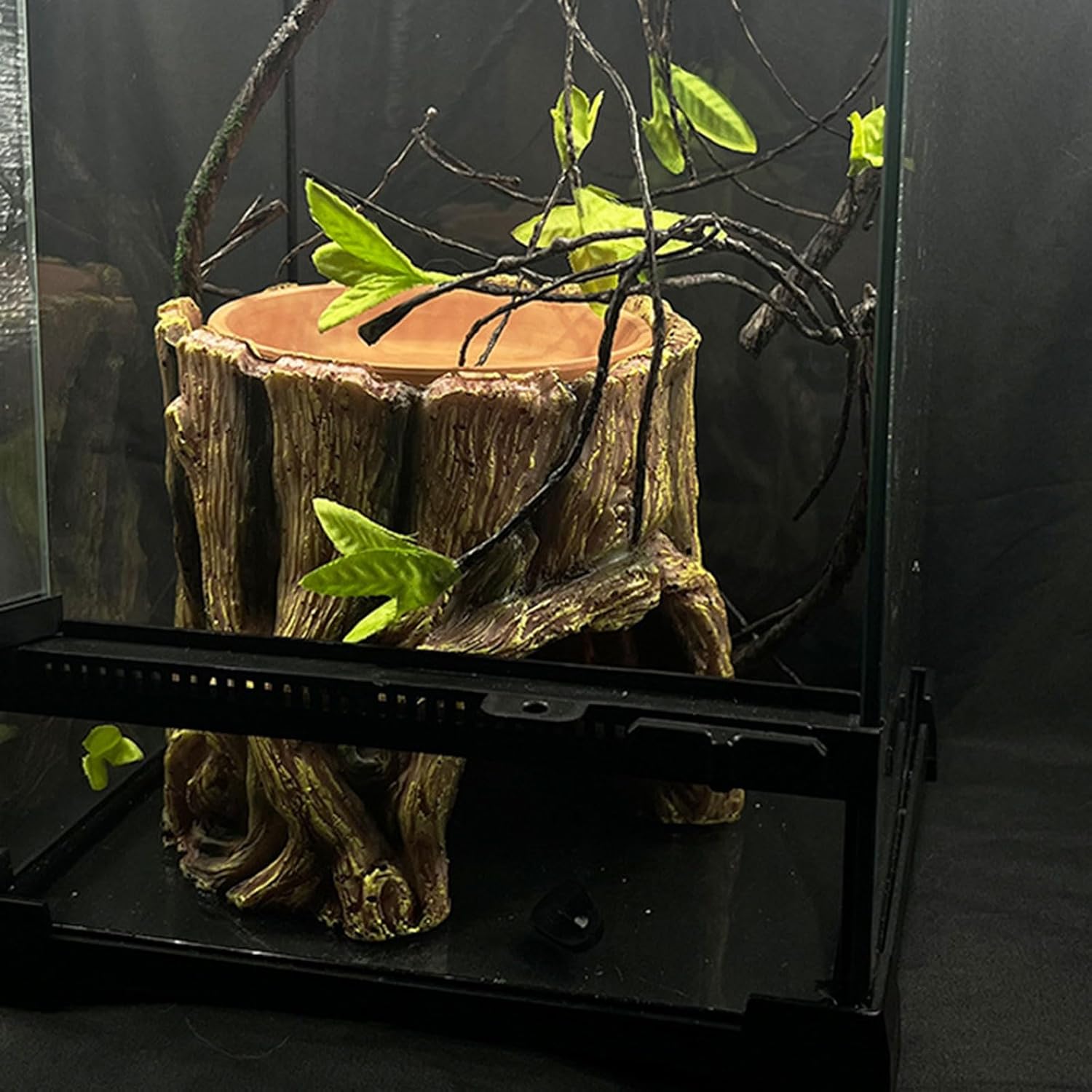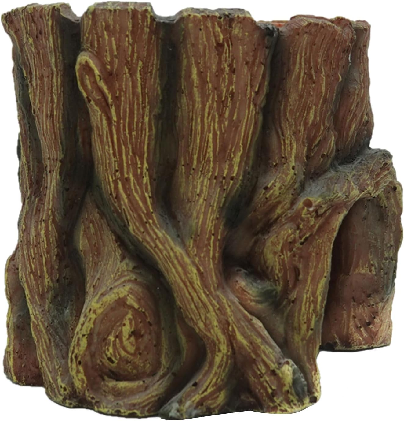 Stump Shaped Cave For Lizards For Terrariums Reptiles Stump Shaped Cave Reptiles Water DispenserFeatures:Multifunctional hide: get a tray on the top, providing a feeding tray for pet, and with a simulated escape hole to provide fun and playfulness. Simulations landscaping: with a realistic stump appearance , which can provide a natural and real environment for reptiles. Suitable for various reptiles such as snake, and lizards, this hide caters to different pet need.Allows reptiles to nature, very helpful for happy and growing of reptiles for adding happy to reptiles tanks, size: 6x6x6inch.Specifications:Component:PUSize: About.15x15x15cm/5.9x5.9x5.9inchPackage Includes:1 pc Reptiles HideNote:1.Please allow 1-2cm errors due to manual measurement, note that you donot mind before order. 2.Due to the differences between different monitors, the picture may not reflect the actual color.