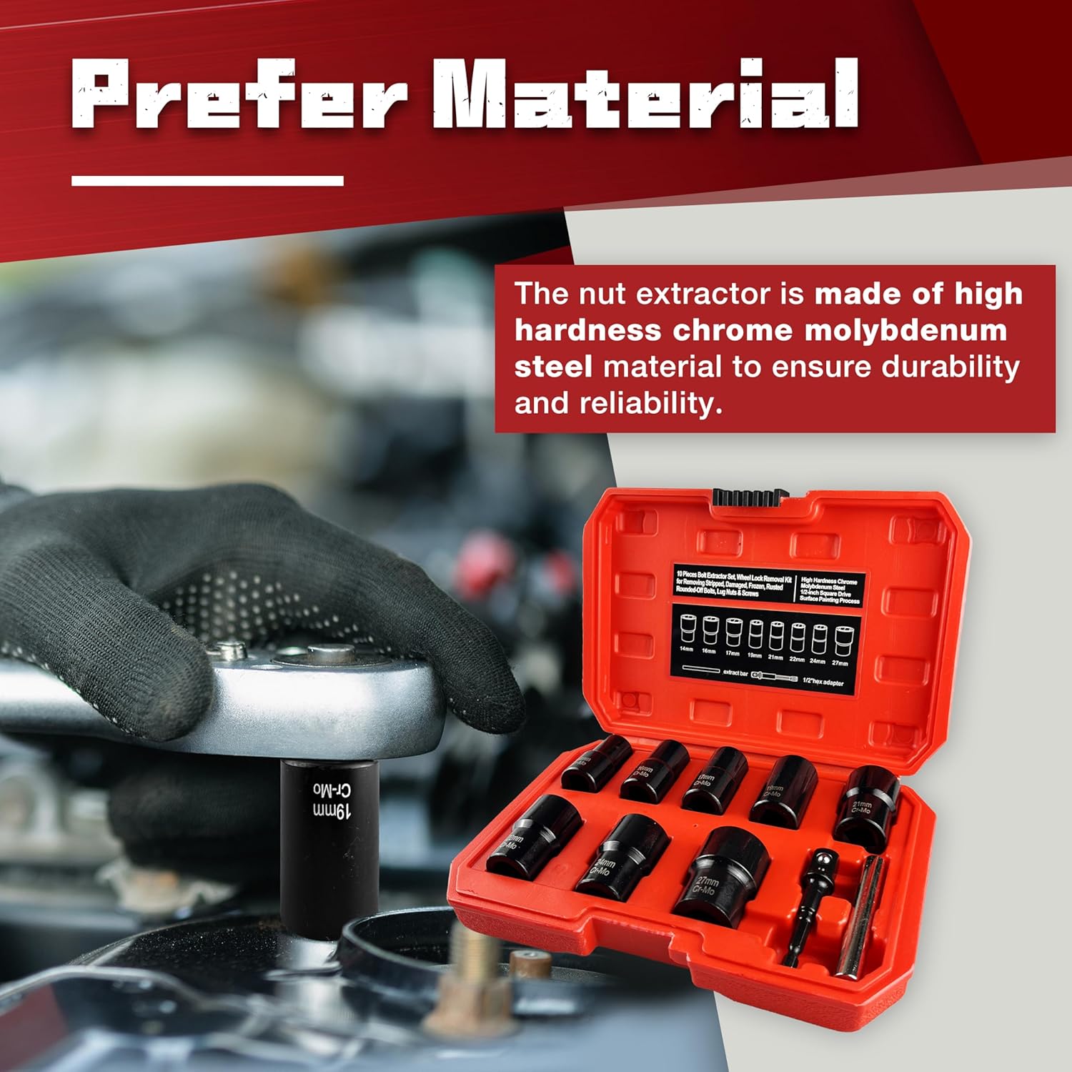 | Compatible Fastener Range | 4mm, 16mm, 17mm, 19mm, 21mm, 22mm, 24mm, and 27mm, plus 1/2” impact hex adapters and a firing pin |