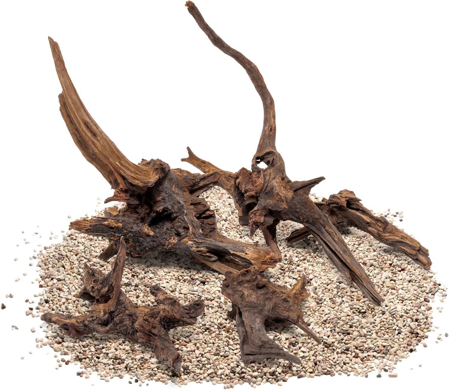 Dragon wood is an intricate and unique piece of driftwood that will add tons of character to any aquascape. Similar to Dragon Stone, Dragon Wood is a natural occurring hardscape full of holes and tunnels. These caves are perfect for fish that enjoy hiding, such as plecos. Dragon Wood come in a range of colors, ranging from dark brown, light brown, and brownish grey. These colors may change overtime from water exposure. Driftwood will release tannins for a period of time which can cause a slight yellow or brown tint to the water. Dragon Wood is a great choice for those that enjoy the look of Dragon stone but want to have driftwood in the tank to help lower the pH of the water. Boiling the wood and having activated carbon in the filter can help remove a majority of the tannins from the driftwood and the water column.