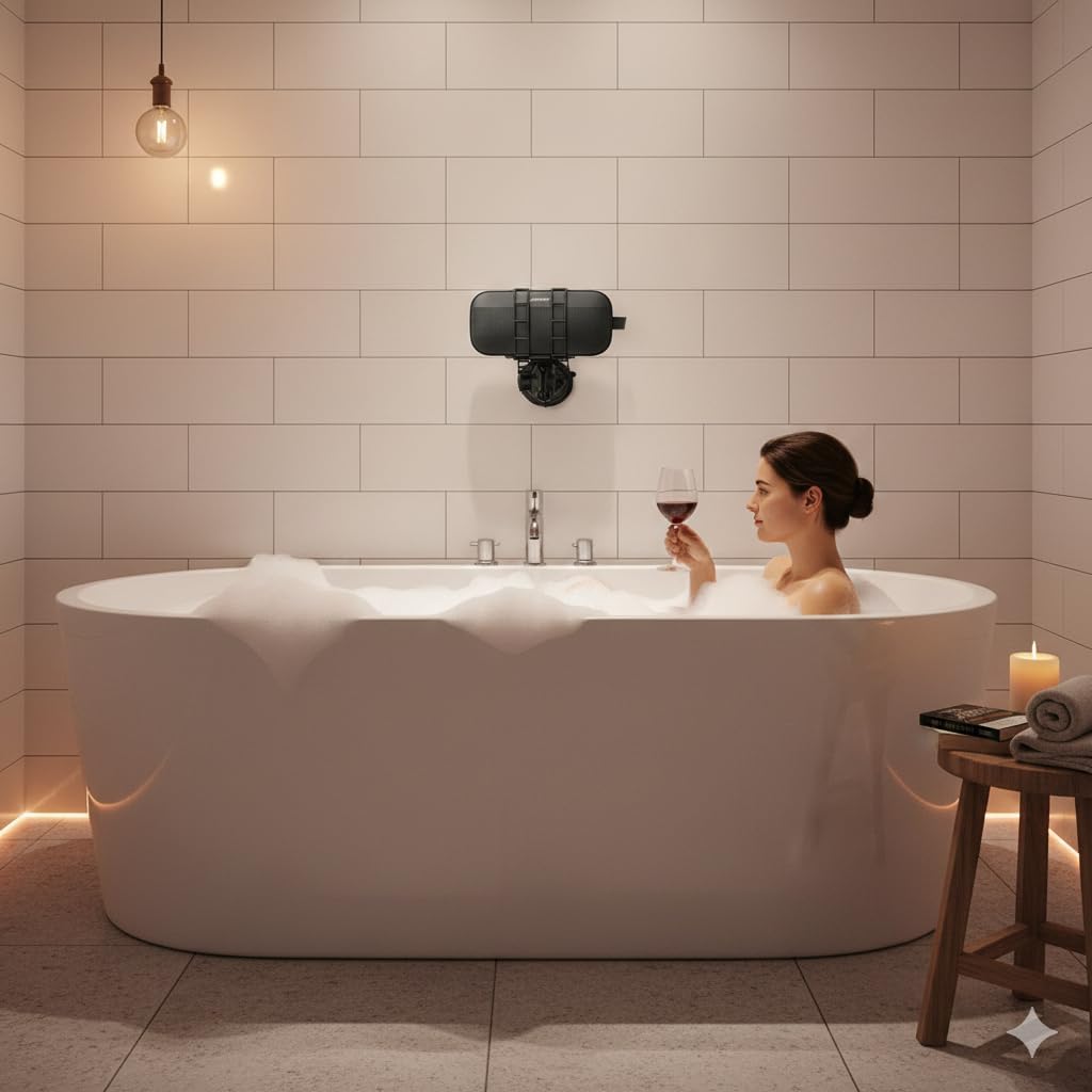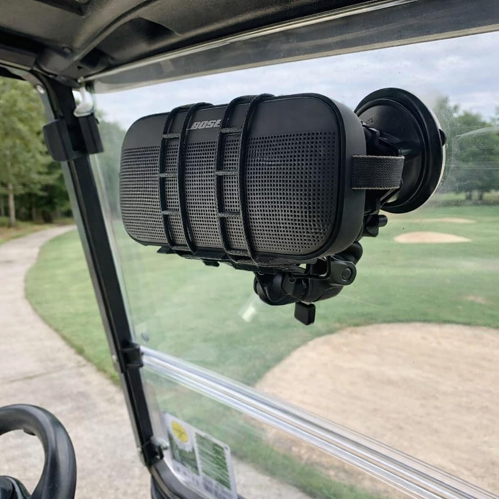 This heavy-duty suction cup portable speaker mount transforms how you enjoy your Bluetooth speaker by giving you the freedom to position it exactly where you need it. The powerful suction cup creates a secure hold on smooth surfaces like glass, tile, mirrors, and glossy walls, making it perfect for the golf cart, car, boat, ATV / UTV, or shower. The adjustable sizing mechanism accommodates a broad range of Bluetooth speaker sizes and shapes (cylindrical, square, rectangle) -- from compact portable models to larger home speakers, this mount ensures a snug and stable fit. The mount features both swivel and tilt capabilities, allowing you to angle your speaker in any direction for optimal sound projection and listening experience. Whether you want to enjoy music while showering, boating, or tailgating, this versatile mount keeps your speaker safely elevated and out of the way. The robust construction ensures your speaker stays firmly in place, while the adjustable design makes installation and repositioning quick and easy without tools or permanent fixtures.