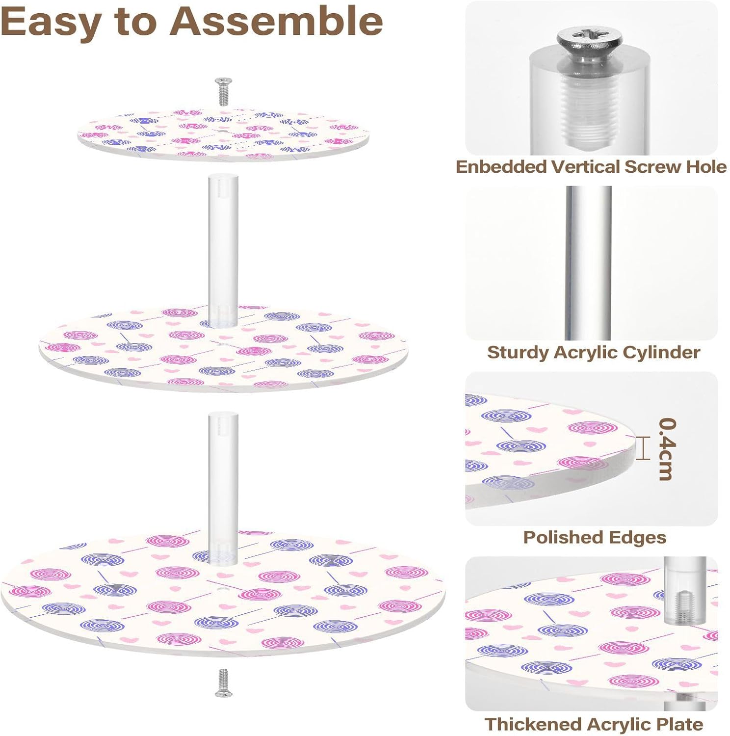 3 tiers round cupcake stand,acrylic cake tower stand holder macaron display rack cookie candy buffet desserts platter with non-slip and stable base for wedding, birthday, theme party. Due to the difference between different monitors,the picture may not reflect the actual color of the item,Please allow the slight color difference! We always doing our best to provide the best service and reliable products for every customer,Thank you very much! Have a good day!
