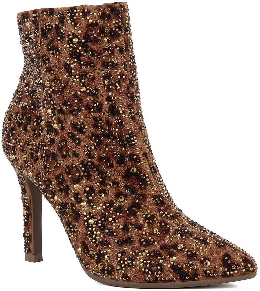 Sugar Women’s Vegan Leather Pointed Toe High Heel Ankle Booties – Side Zipper Dress Boots with Stiletto Heel Make a bold statement with the Sugar Vecna women’s ankle booties, crafted in smooth vegan leather with a sleek pointed toe. These fashion-forward booties feature a medium width fit and a striking 3.75-inch stiletto heel, delivering height and elegance while keeping the profile refined. The gold metallic Sugar logo on the sock lining adds a subtle signature detail that sets them apart. A convenient inside nylon zipper makes them easy to slip on and off, while the tricot lining and padded sock ensure comfort with every step. The durable TPR outsole provides traction and stability, giving you the confidence to wear them from day to night. Thoughtful construction and clean stitching showcase the quality design behind this versatile style. Perfect with dresses, skirts, or tailored pants, these high heel booties are ideal for work, evenings out, or weekend plans. The combination of a sharp silhouette, premium vegan leather finish, and a comfortable fit makes them a must-have for any wardrobe. With the Vecna booties, you’re stepping into style that looks as good as it feels.