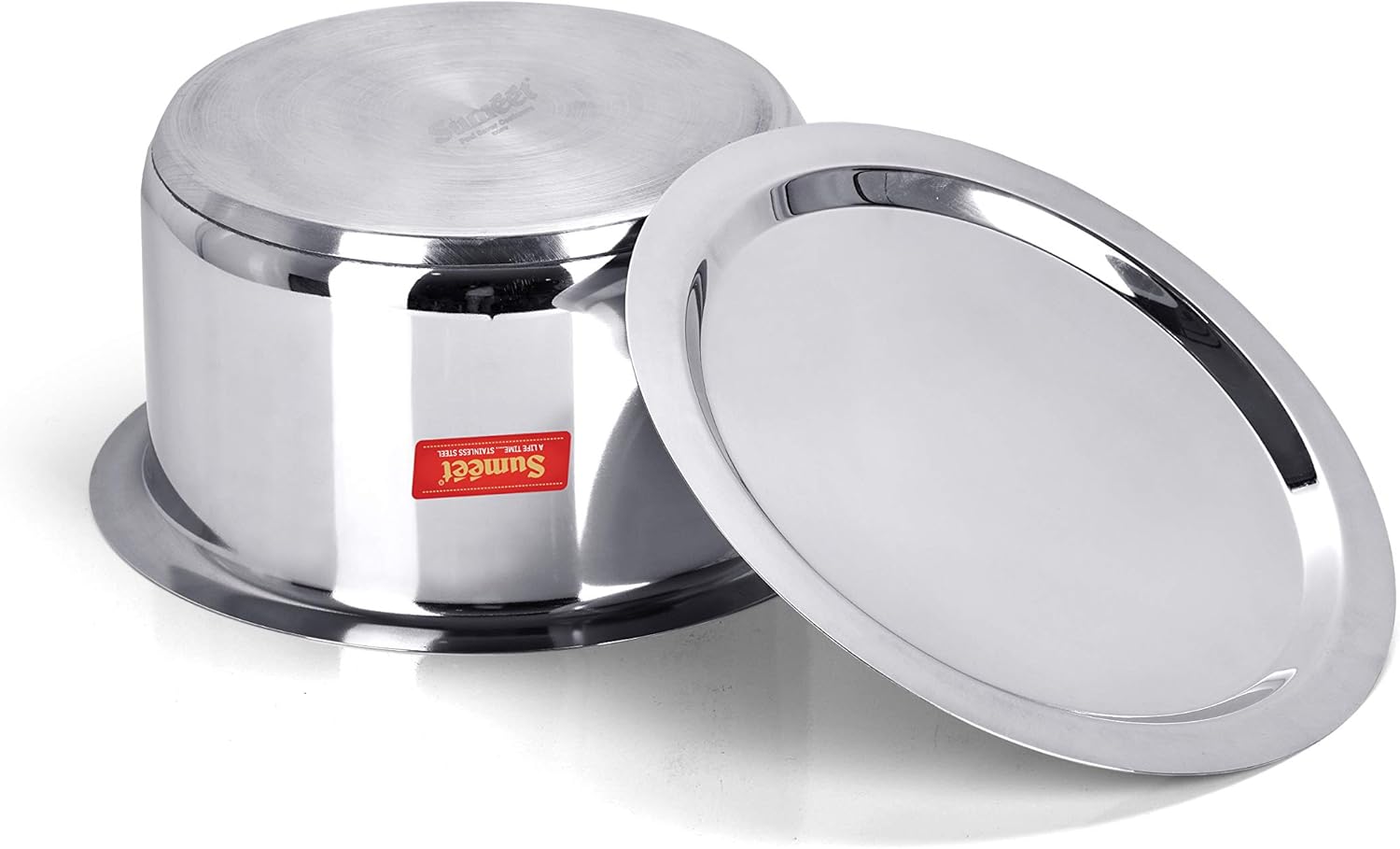 Sumeet presents the best kitchen utensils that will accentuate your kitchen and give you the best cooking experience. Sumeet cookware is crafted from finest quality Stainless Steel. Its bonded construction of bottom consists of durable stainless steel encapsulating an Aluminium core for even heating throughout. Mirror finish adds Style to your Kitchen to look more beautiful and well decorated. Energy Efficient & Induction Compatible Sandwich bottom prevents the food from getting burnt. These Tope can be used both on gas stoves as well as induction cooktop. The Induction Bottom of this cookware makes it efficient for cooking and saves fuel up to 35%, also saves electricity and time. This Tope has enough space for cooking and storing milk, tea, vegetable curries, curd etc. Sandwich Bottom Base enables Fast Cooking and Even Heat Distribution. Topes comes with an attractive and efficient shape, design and available in various sizes, hence taking care of all your kitchen needs. Compact Size Makes It Easy to Store in Kitchen Cupboards. When Not in Use, Stack the Smaller Container Inside Bigger Containers Saving Storage Space. Sumeet Stainless Steel Cookware are carefully designed and fabricated with compliance with industry standards. This cookware is manufactured under Strict Quality control. This tope is strong, durable and convenient to clean & wash. Dishwasher Safe Exterior Adds Versatility and Functionality. Sure to serve you well for a long time, this item is an ideal pick against your valuable currency. Size: 18 Dimension - L X W X H (cm):29 X 29 X 14.4 Capacity – 6 L Weight – 1.400 Kgs