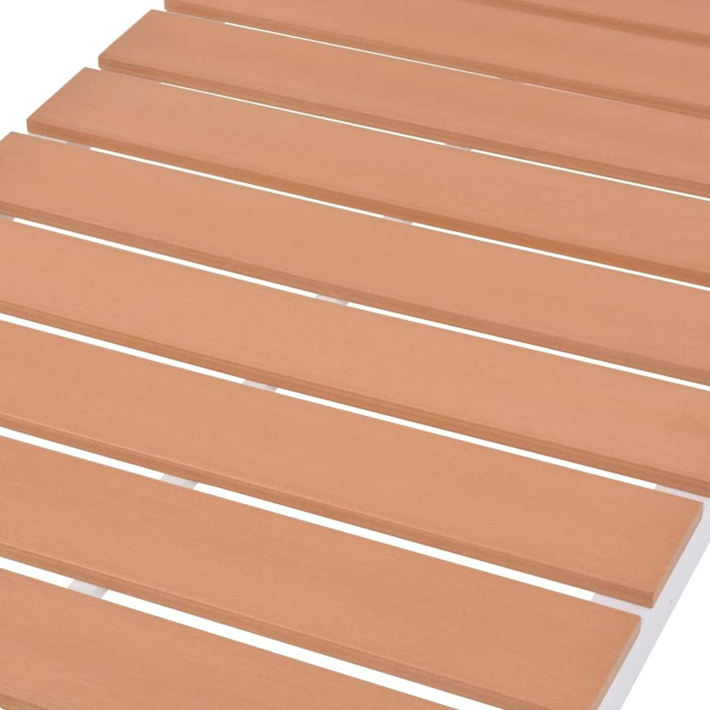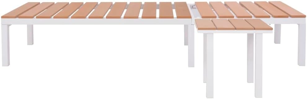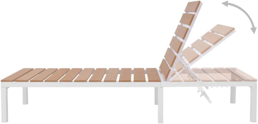 This high-quality sunlounger combines style and functionality, and will become the focal point of your garden or patio.Thanks to the weather-resistant WPC material, the sun lounger is easy to clean suitable for daily use. The lounge bed features a sturdy aluminum frame, making it very stable, durable and lightweight for easy movement.Color: White and brownMaterial: Aluminum + WPC (wood-plastic composite)Dimensions: 24.8" x 78" x (13"-36.2") (W x D x H)Seat depth: 49.2"Seat height from the ground: 13"Backrest adjustable in 5 positions