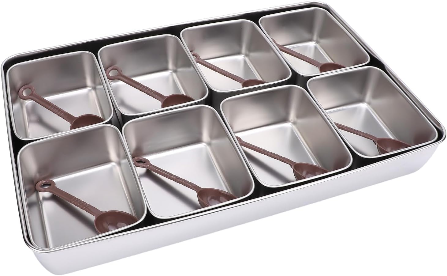 1. Safe and Reliable: Constructed of premium material, this seasoning box is temperature from -20°C to 120°C, ensuring safety, reliability and long service life. 2. 8 Containers: With 8-grid design, this condiment caddy allows you to easily classify and store bar accessories, fruits, , salad ingredients and party side dishes. 3. Non-slip bottom: The non-slip bottom of the serving tray provides stability and ease of use, making it convenient for handling and ensuring safe placement. 4. Large capacity: With large capacity and size of 450x290x72mm, this seasoning box is suitable for storing various condiments, offering a more convenient and efficient user experience. 5. Exquisite workmanship: Crafted with meticulous attention to detail, this seasoning box is burr-, offers a comfortable touch, is easy to with a simple water wash, and maintains a shiny appearance. Specification: Item Type: Seasoning Box Product Size: Approx. 450x290x72mm/17.7x11.4x2.8inch Single Container Size: Approx. 130x100x55mm/5.1x3.9x2.2inch packing list: 1 seasoning box. 8 spoons.