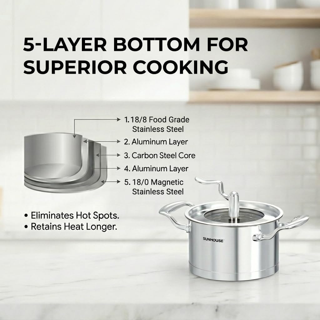 The Sunhouse Stockpot is a versatile kitchen essential designed to handle your largest cooking tasks with ease. This spacious stockpot is perfect for preparing hearty soups, flavorful stews, pasta dishes for the whole family, or simmering stocks and broths. Whether you're batch cooking for meal prep, canning seasonal produce, or cooking for a crowd during the holidays, this stockpot provides ample capacity to get the job done. The generous size allows for even heat distribution, ensuring your ingredients cook uniformly from top to bottom. From boiling corn on the cob to steaming seafood, the Sunhouse Stockpot is built to be your go-to cookware for high-volume cooking needs. Its practical design makes it an indispensable tool for both everyday meals and special occasions.