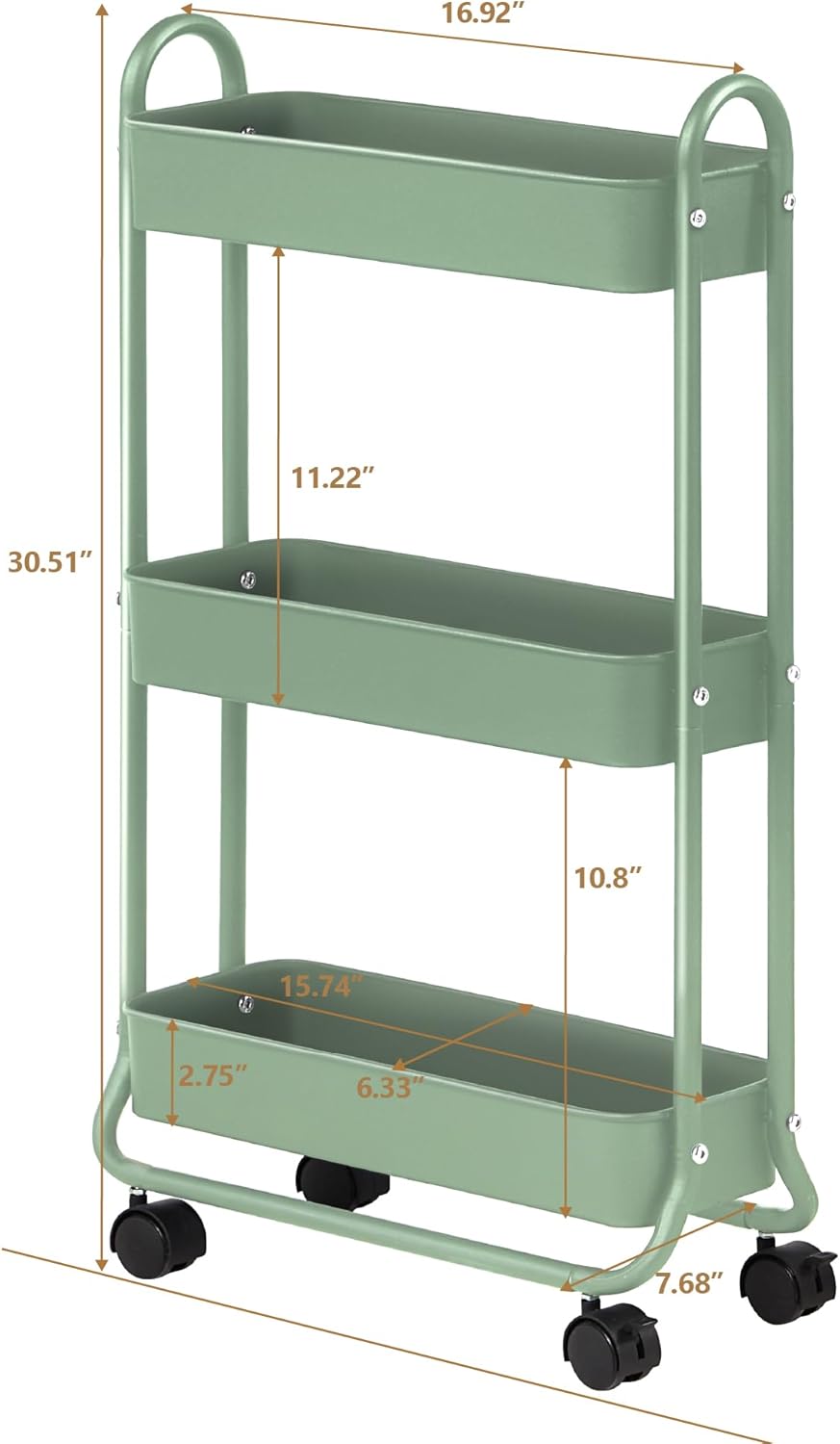 Optimize your space with the SunnyPoint Slim Rolling Cart, a versatile solution for organizing small spaces. Perfectly designed to fit in the gap between your toilet and sink, washer and dryer, or refrigerator and counter, this slim storage cart maximizes space and adds functionality. Ideal for use in the bathroom, closet, kitchen, garage, laundry room, office, and more.