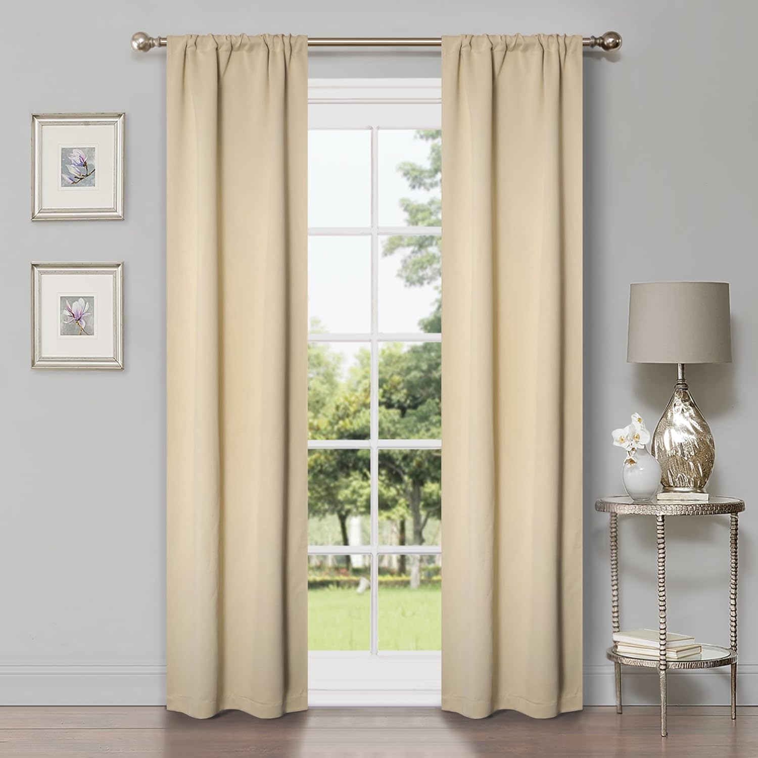 Update the look of your windows with the Solid Classic Modern Blackout Curtains by Superior. Crafted from 100% Polyester with rod pockets or stainless grommet header (depending on size), these curtains is durable and modern in design. Our blackout curtains block out unwanted sun and light, so you can feel more comfortable in your home. These curtain panels feature a solid design that will effortlessly accent your existing home decor. Available in packs of 1 (2 panels), 2 (4 panels), and 4 (8 panels), these curtains can serve any space.