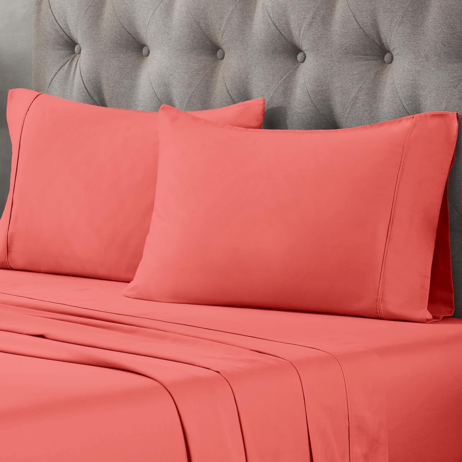Experience affordable luxury with the Superior Egyptian Cotton Blend 300 Thread Count Solid Pillowcase Set. Made from a sumptuous Egyptian cotton blend, these pillowcases deliver natural softness and everyday comfort. The single-ply design features a lustrous sateen weave finish, enhancing the smoothness of the cotton. With an indulgently soft 300 thread count, these pillowcases offer lasting durability and simple luxury. Available in a variety of stunning colors and sizes, they are the perfect addition to elevate your bedding.
