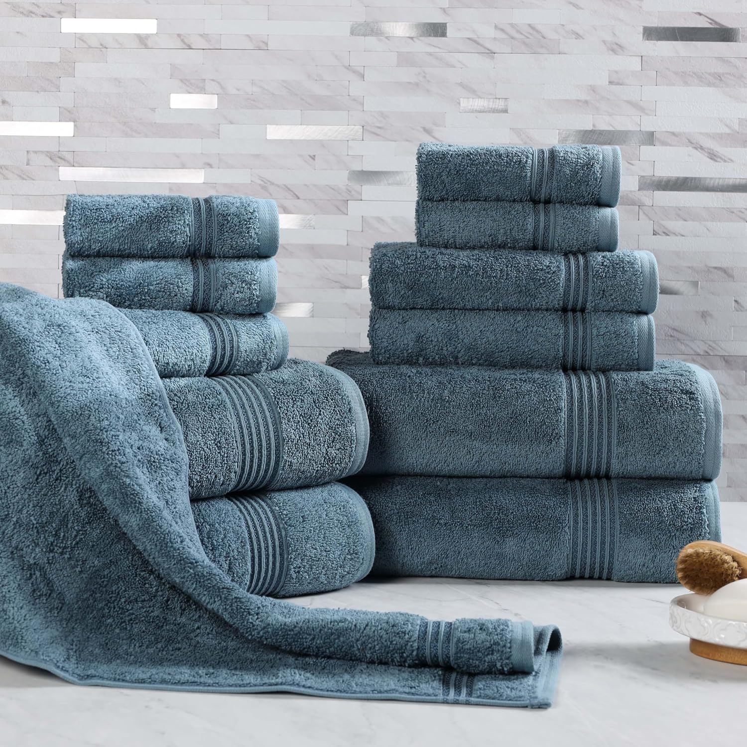 Pamper yourself with our Egyptian Cotton Solid Bathroom Towel Set. Both exceptionally soft and highly absorbent, the Egyptian Cotton construction has a thick and luxurious feel to help get you dry quickly. For added comfort, each towel in this set features a medium towel weight that will keep you toasty warm as soon as you step out of the shower or bath. This set is available in various solid colors with a decorative rope-style trim to bring a clean and modern look to any master or guest bath.