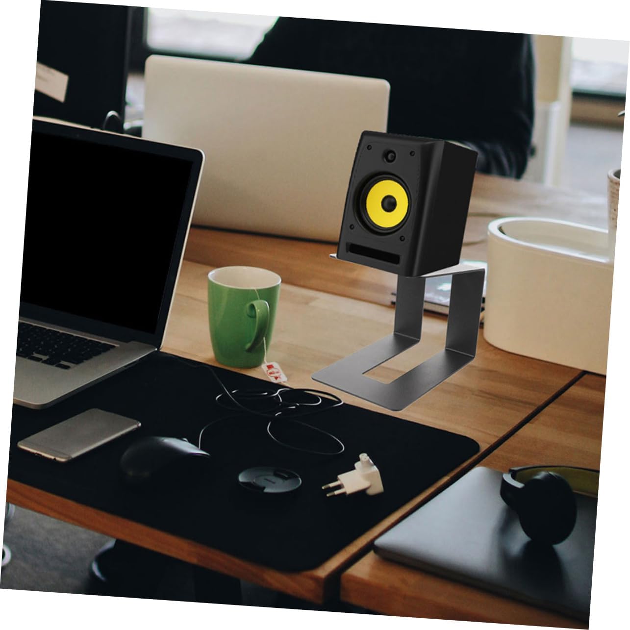 Package List 2 x desk speaker stands Characteristics -Material:Metal speaker stand -Color:Black speaker desk mount -Size:18.50X15.00X13.00cm/7.27X5.89X5.11in portable speaker stand -Universal size fits speakers, and the stand is strong enough to support speakers without accidentally tipping over bookshelf speaker stands. -Use a speaker stand, the advantage you are not transmitting the entire resonance range through the stand base, but isolating it from the table speakers stands. -The finish makes a modern look, this speaker holder stand is a great tool for you monitor speaker stands. -Small angle tilt provides better sound and improves listening experience by positioning at the height for better sound speaker stands. -This speaker stand not only elevates your speakers but also frees up a little space on your desk tabletop speaker holder.Goods Informationspeaker stand desk The structure is stable, the workmanship is , and the metal speaker stand is durable to use.speaker metal stand Still looking for a professional speaker stand? Still looking for a simple and practical hold your speaker? If so, our speaker stands are sure to meet your needs