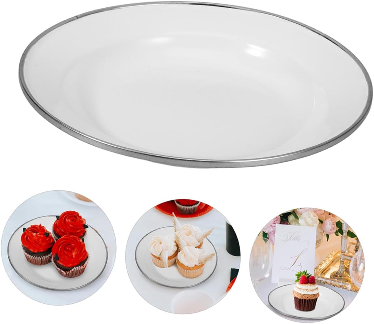 Package List 4 x enamel plates Features -Material:Enamel -Product Info:Enamel disc -Color:White -Size:22.00X22.00X3.00cm/8.65X8.65X1.18in -Crafted from , thick enamel, these plates are built to withstand daily use and are easy to clean, ensuring they remain in excellent condition for years enamel food dish. -Smooth and stable, which will not hurt your hands, safe and healthy. A variety of ways to use, bring convenience to your life vintage enamel plates. -This set of enamel plates features a retro design, making them a practical addition to any retro-themed space outdoor vintage dinner plates. -You can enjoy your salad,steak, pasta and more for parties weddings anniversaries and more events serving dishes. -These versatile plates are ideal for serving a variety of foods, from snacks and fruits to desserts, making them a practical choice for any occasion appetizer plate.Goods Informationsmall tray enameled Designed with a compact and portable size, the Enamel Plate is convenient to carry and store.hotel plate Its multi-functional design makes it a practical choice for diverse culinary presentations.vintage enamel plate Ideal for use in homes, restaurants, and coffee shops, it seamlessly fits into any home