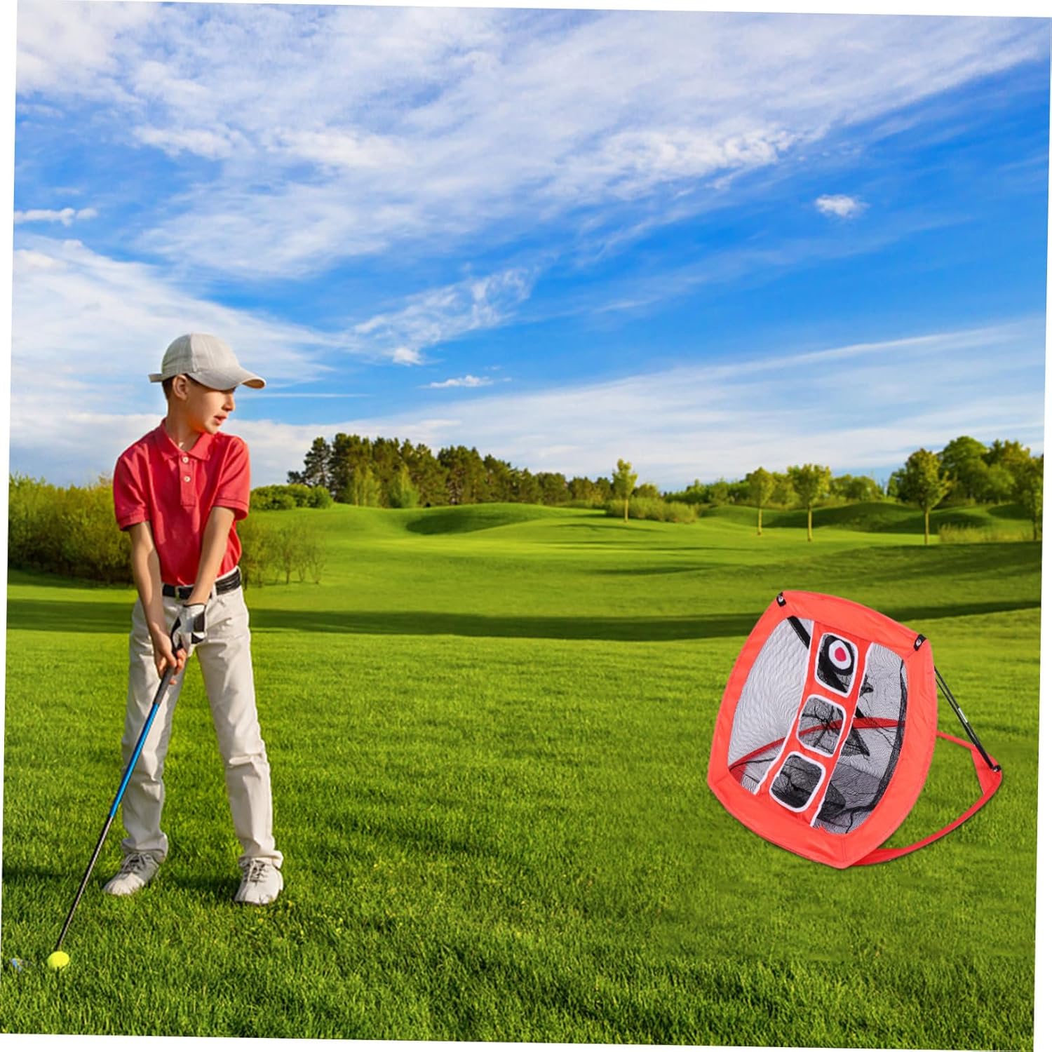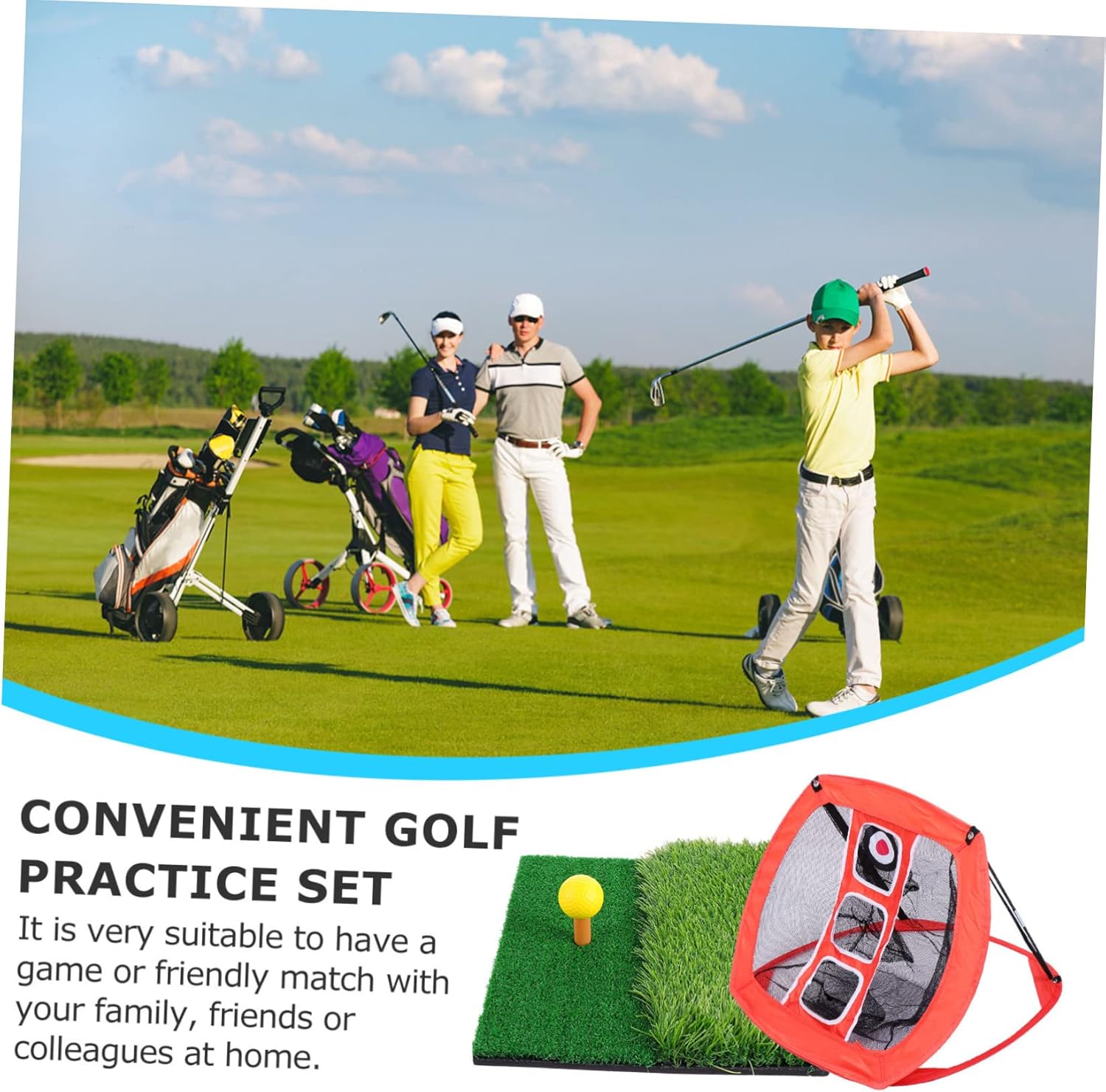 Package Include 1 x Practice Net 1 x Hitting Pad 3 x Tee 6 x PU Ball Features -Size: 71.00X71.00X50.00cm/27.90X27.90X19.65in Training -Material: Nylon Net Mat -Made of nylon, durable for long term service Outdoor Practice Net. -Can help you to practice your cutting skill indoor and outdoor Nylon Net. -Suitable for indoor and outdoor use, great for practice use Practice Net. -Perfect as a present for friends, family, colleagues, etc Indoor Net. -Portable chipping practice net, convenient and easy to use Sports Net.Goods DescriptionNet Mat With this pockets net, you can practice without worrying about disturbing your neighbors with missed shots.Sports Net the driving range is and time-consuming.Indoor Net Owning a net can greatly help cut down your training cost,