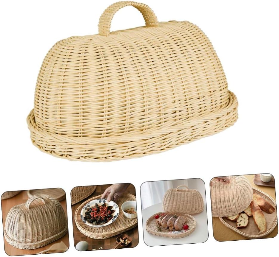 Package Include 1 x Set of Food Cover with Tray Features -Product Info:Rattan food cover - Size: 35.00X27.00X18.50cm/13.76X10.61X7.27inch. - Color: Khaki. - Material: Rattan. - The food cover will your delicious snacks annoying fruit or being dirty Food Cover. - Waterproof, -proof, -proof and -proof for food fresh-keeping woven rattan food covers. - It is specially designed to your food keeping fresh and delicious rattan cloche for food. - Simple shape and look design is very stylish and generous, and sturdy rattan dome food cover. - Adoption of , this product is , handy and long-time use.Goods Informationrattan food dome Made of high-end material, enough for your long-term use.woven food covers Hand-woven, finely polished, no burrs, and no injury to hands.rattan dome food cover Searching of a food cover? Our delicate and food cover will be the for you.woven snack fruit basket Rattan design, its popularity, very practical to use